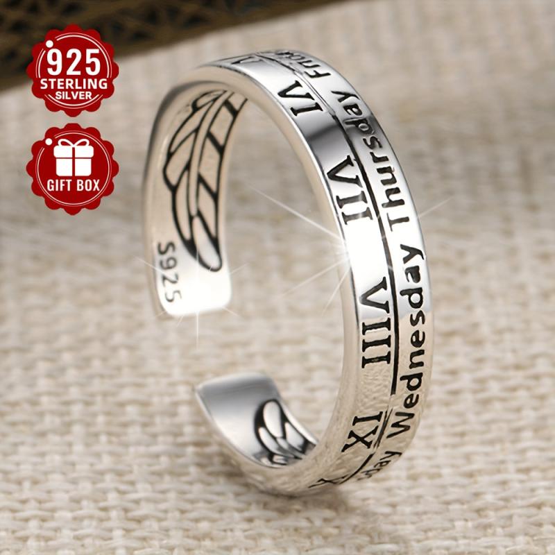 This unique ring features Roman numeral design and is made of high-quality 925 sterling silver. The open design allows for an adjustable fit that is perfect for both men and women.