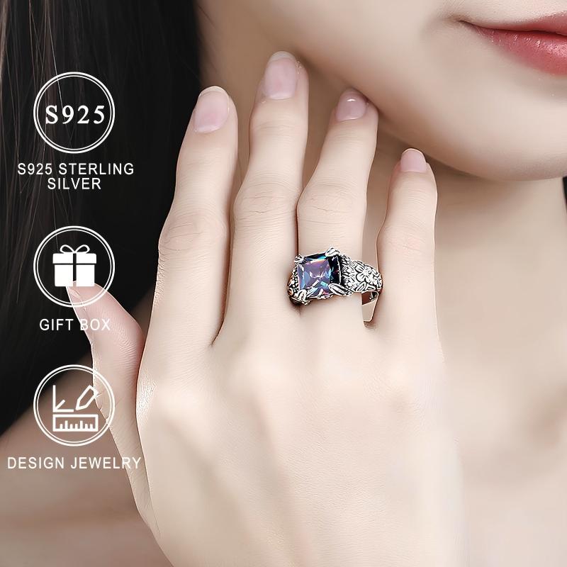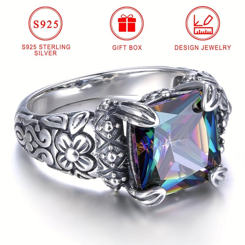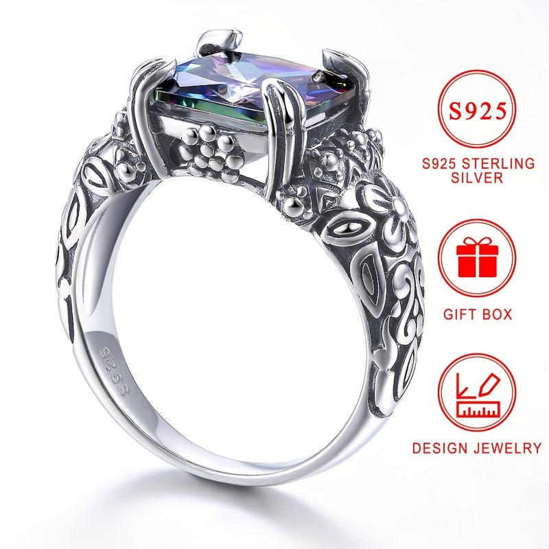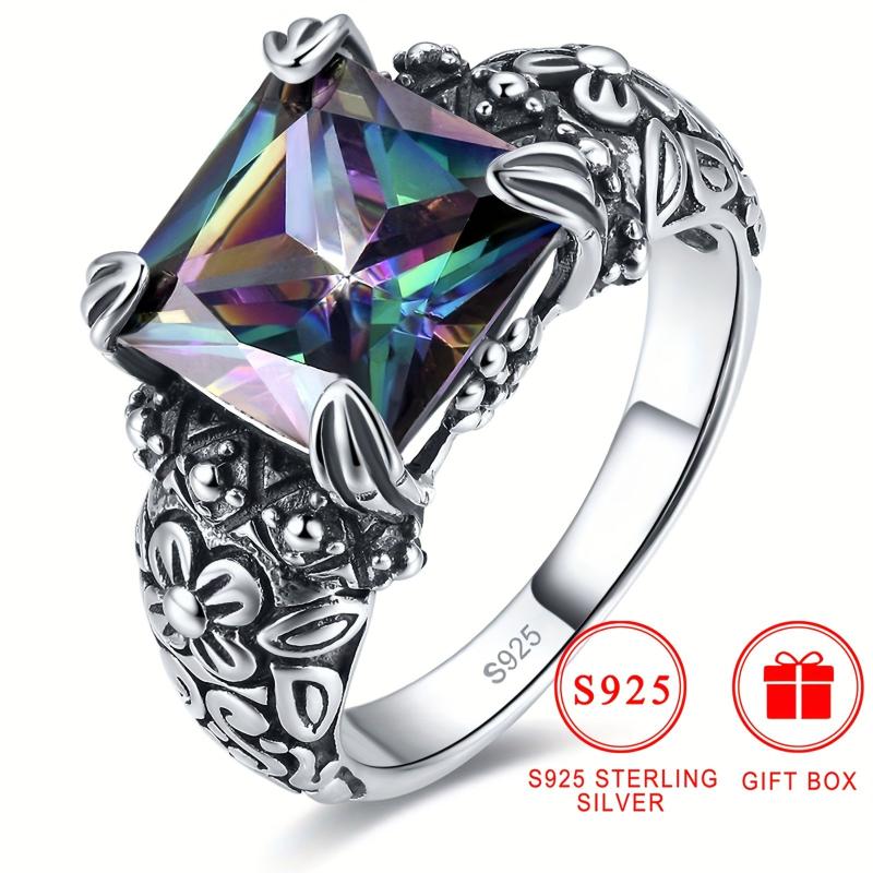 This vintage 4g S925 sterling silver ring features a beautiful rainbow cubic zirconia nickel flower cut design. Perfect for daily wear or as a gift for someone special.