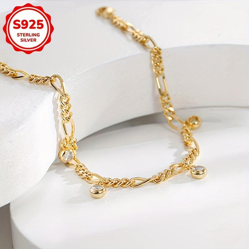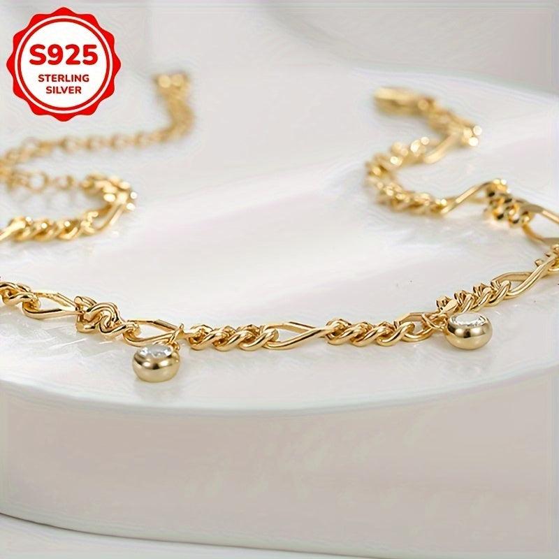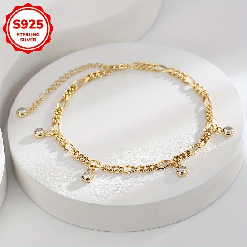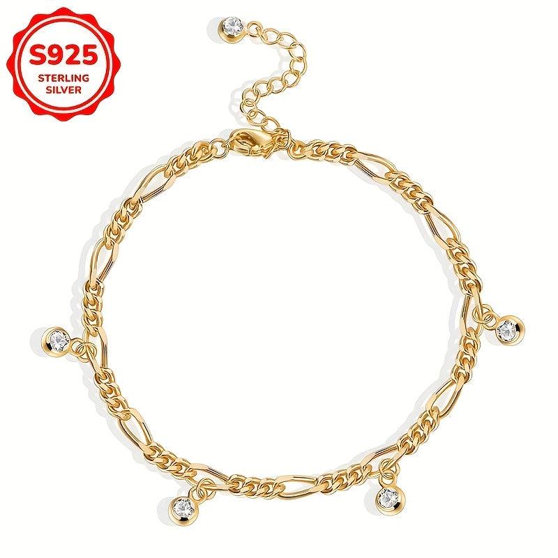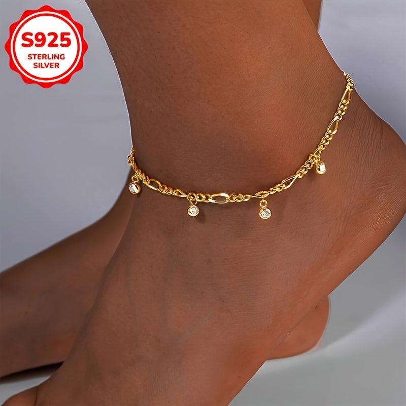 This ankle bracelet is crafted from S925 sterling silver with sparkling cubic zirconia. It weighs 5g and is ideal for casual wear or as a gift for someone special. This vintage-inspired piece adds a touch of elegance to any outfit.