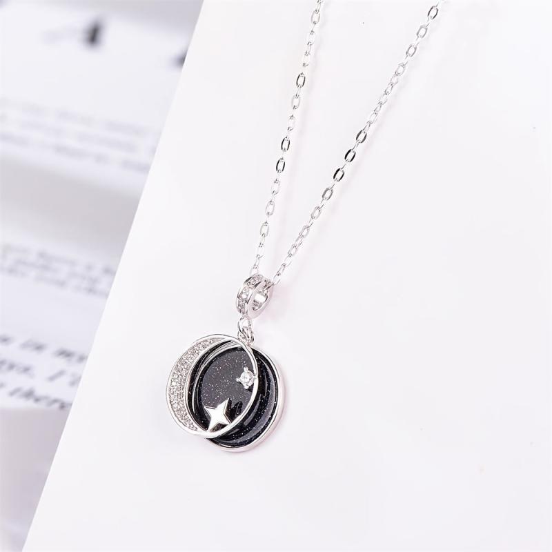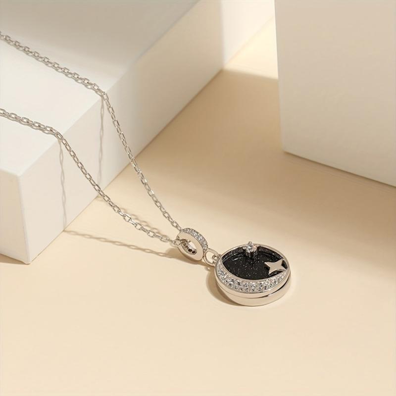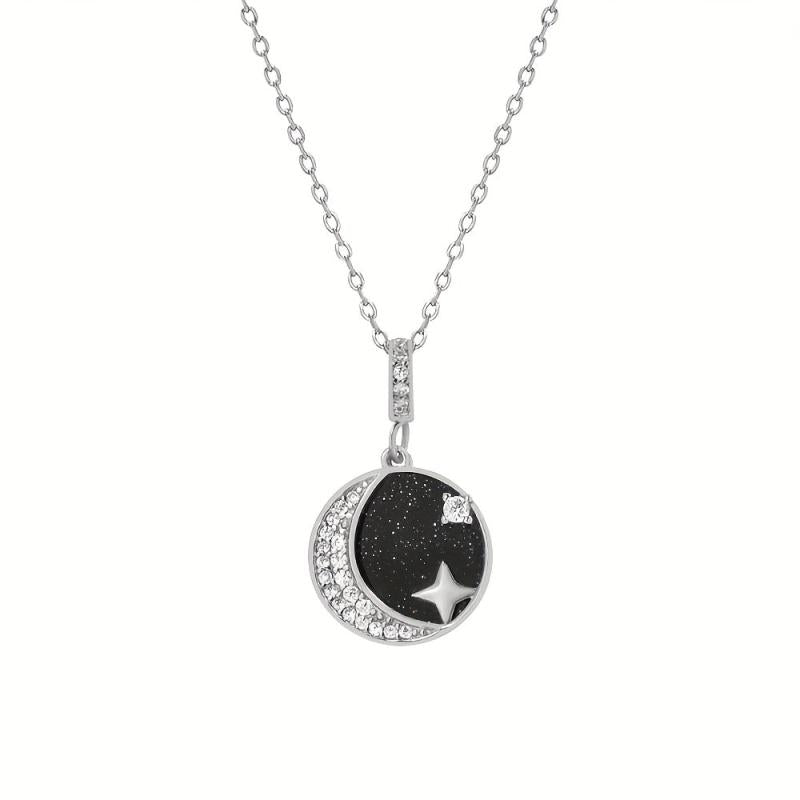 This exquisite necklace features a star and moon design adorned with zirconia stones. Perfect for adding a touch of elegance to any outfit.