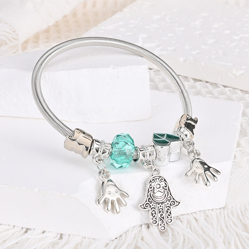 This vintage style silver alloy bracelet features an elegant design that is perfect for women and girls. Ideal for summer wear.