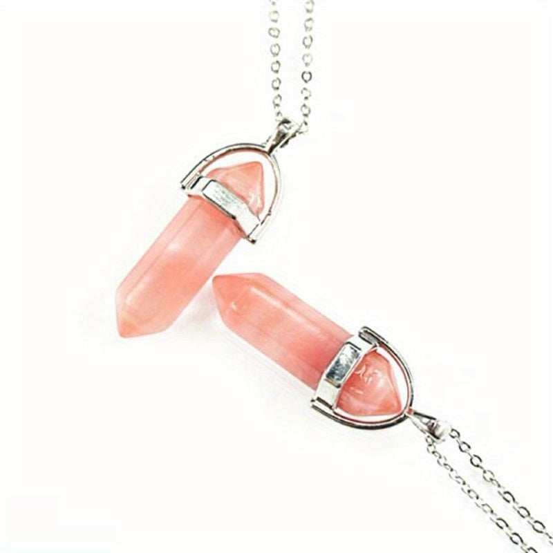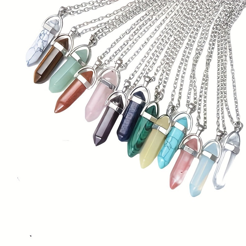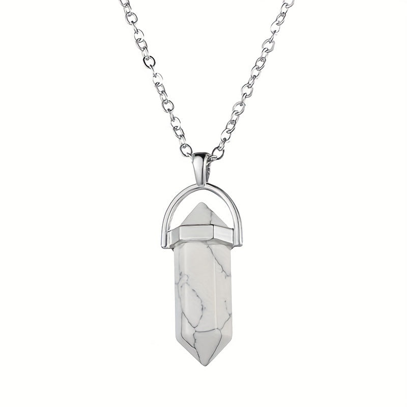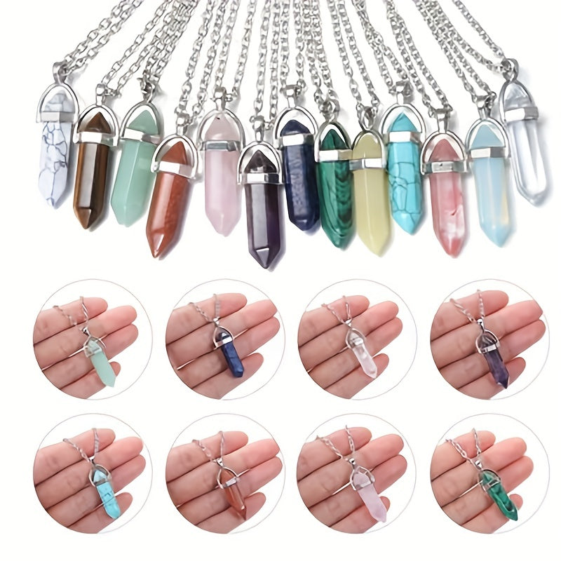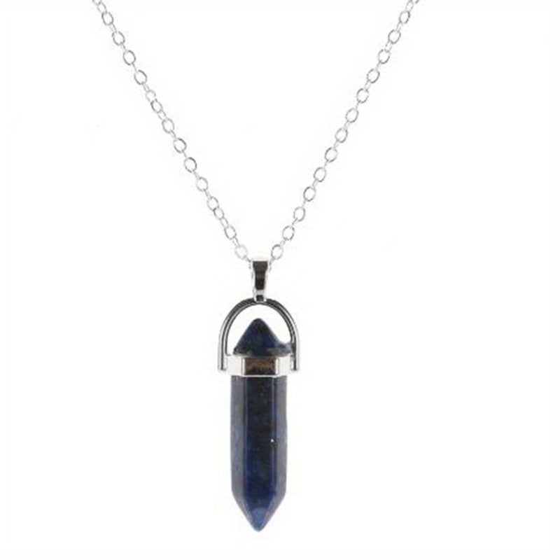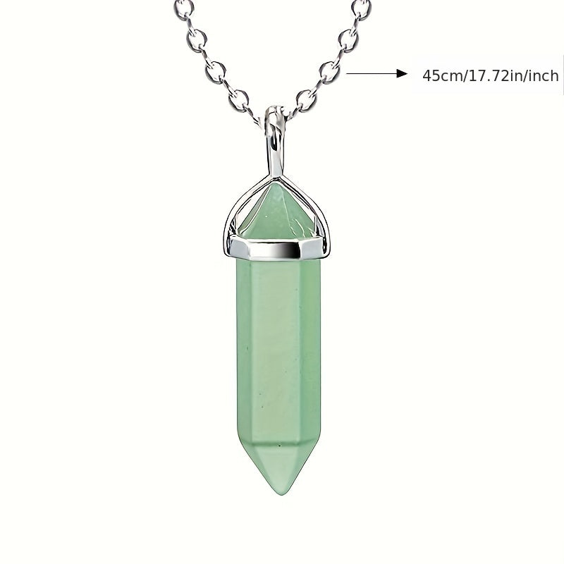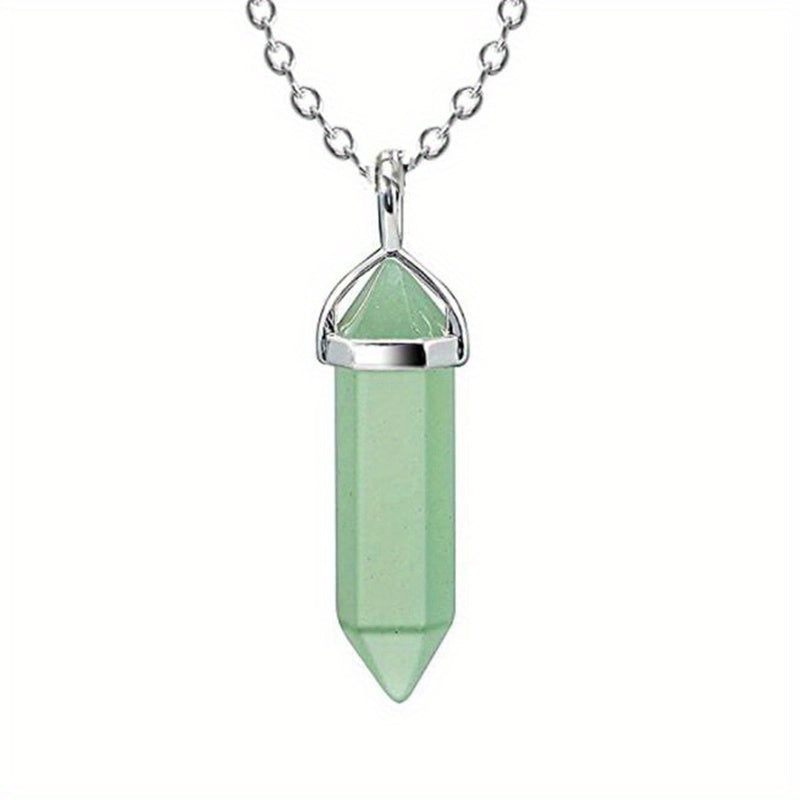 This vintage silver necklace features a natural stone quartz crystal hexagonal column pendant. It is perfect for chakra healing and can be worn by both men and women as a stylish amulet accessory.