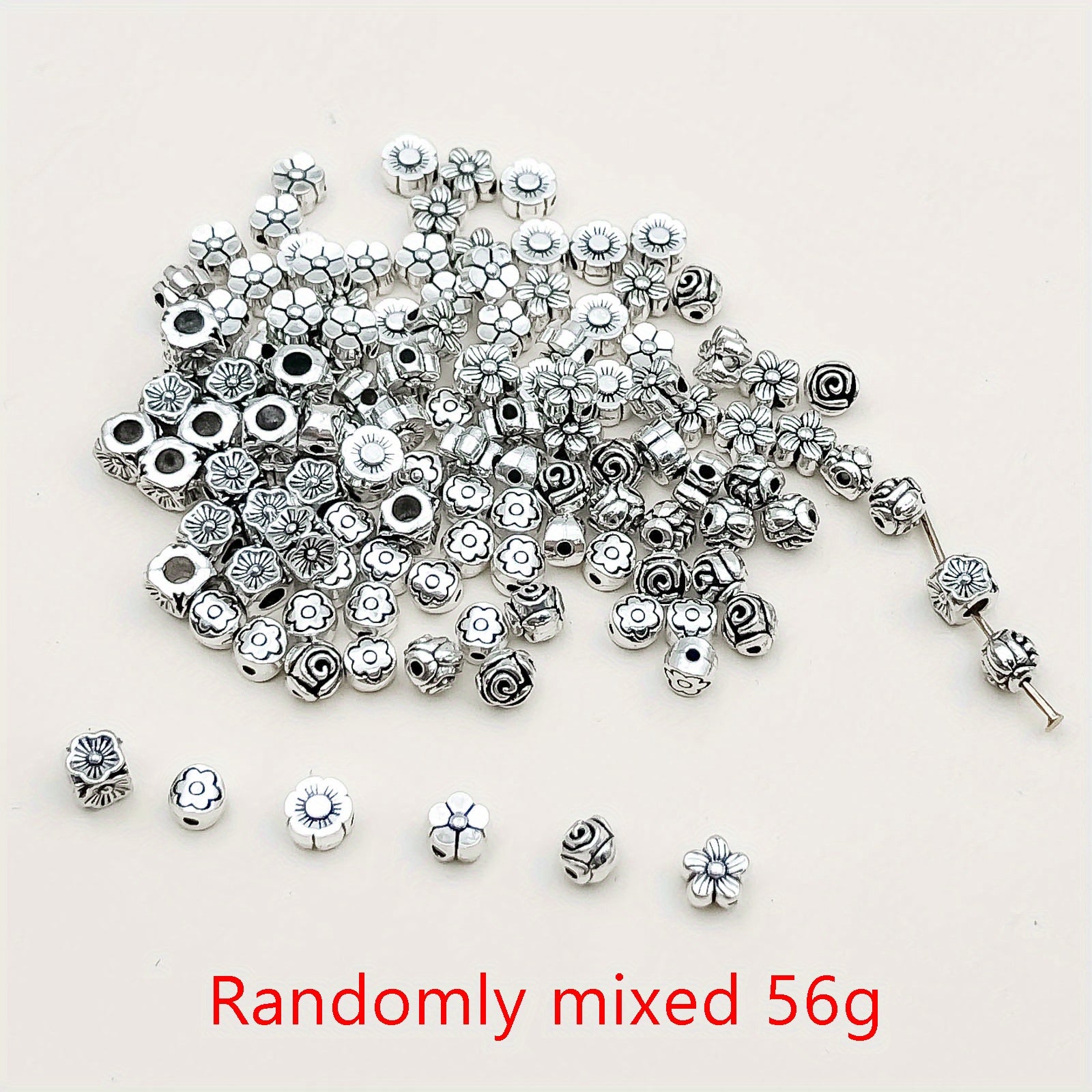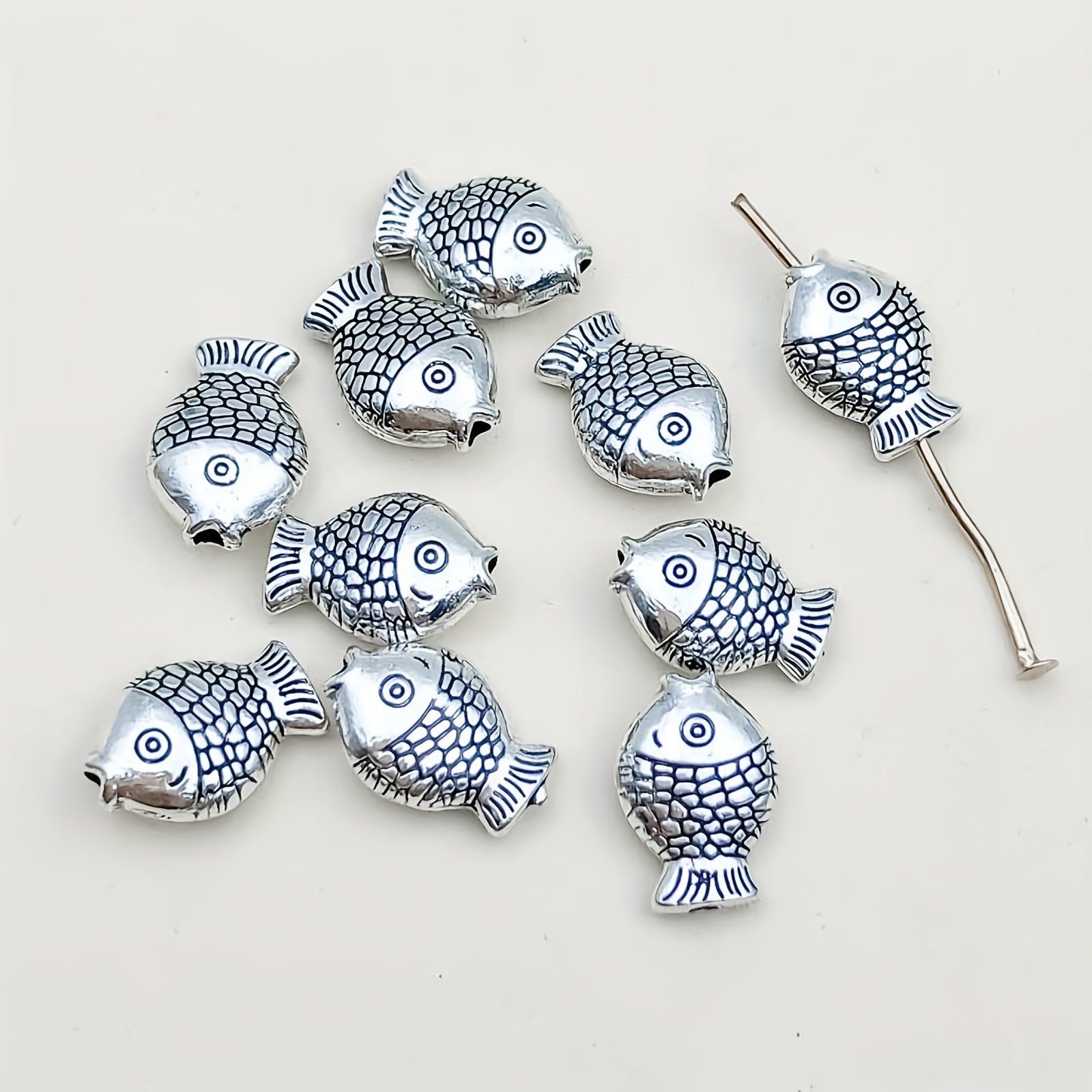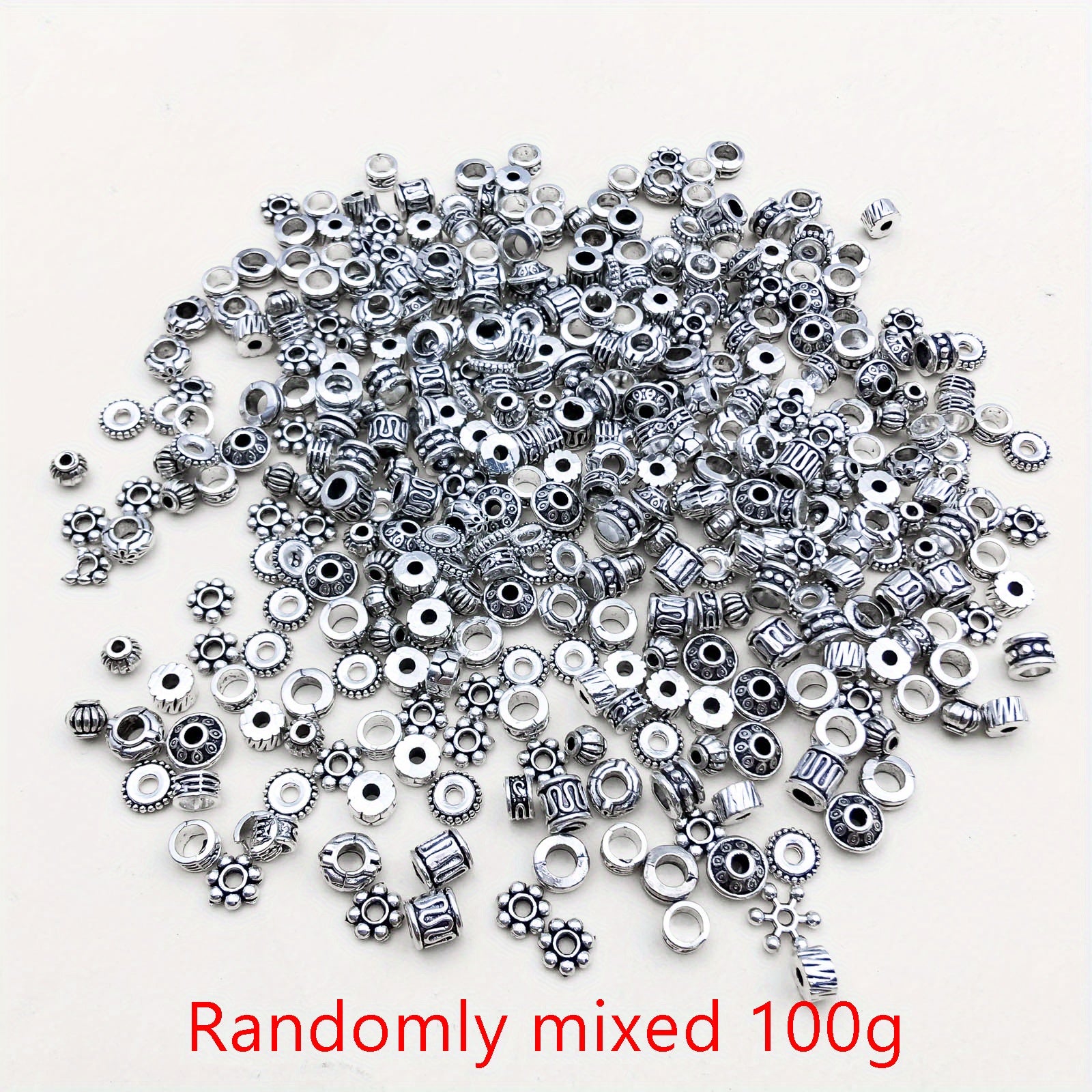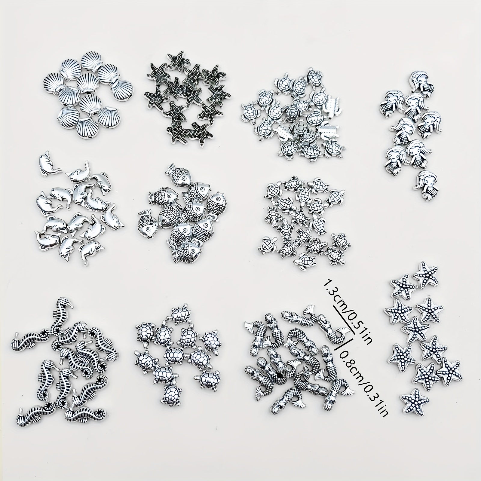 This 100g pack of vintage silvery metal beads features marine life fish and flower tubular spacer beads. Perfect for crafting and jewelry making.