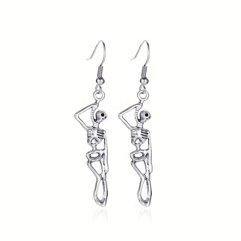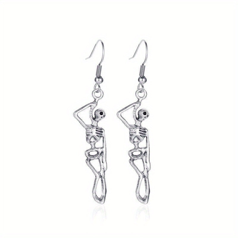Add a touch of humor to your outfit with these vintage hip hop style skeleton dangle earrings. Perfect for club parties and other events.