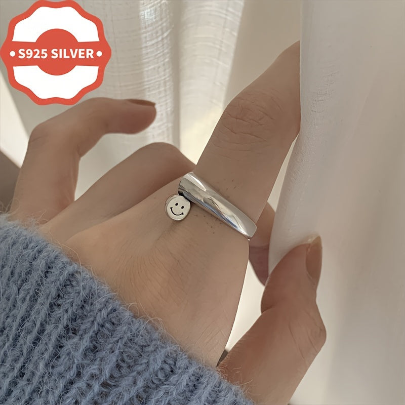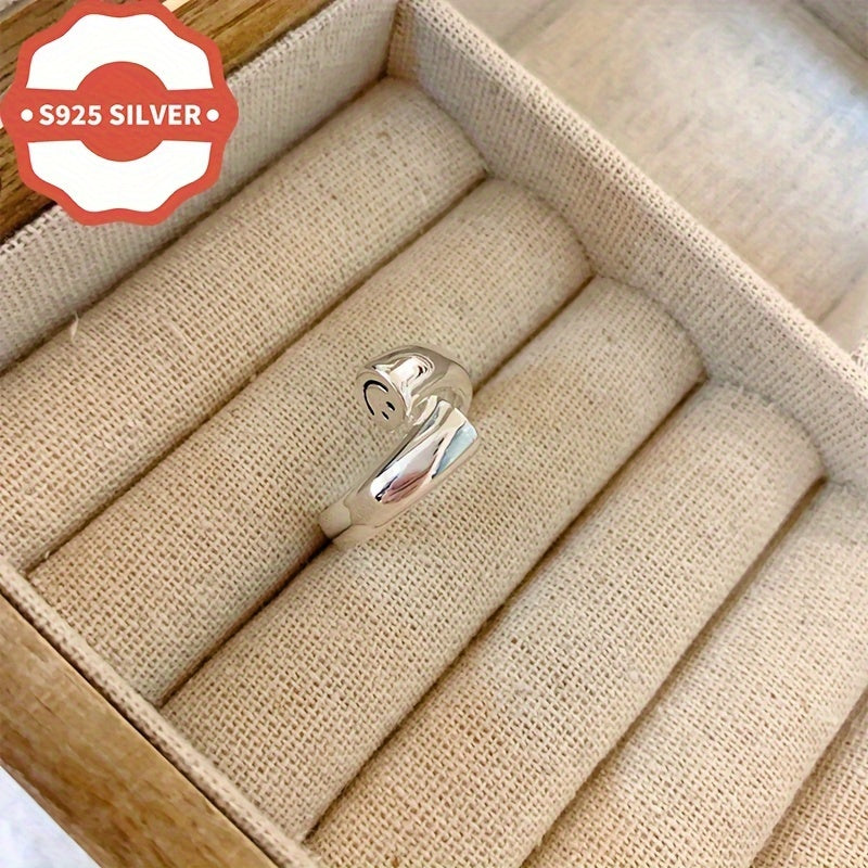 This minimalist unisex ring is made of hypoallergenic 925 sterling silver. It features a smile design and an open band that is adjustable to fit all sizes. Perfect for all occasions, this ring is a great gift for her. Anti-oxidation treatment ensures long-lasting shine.