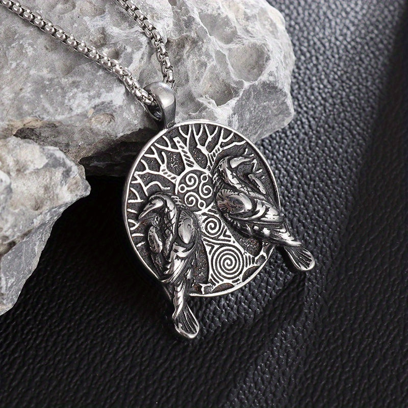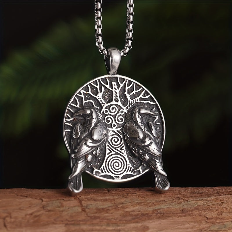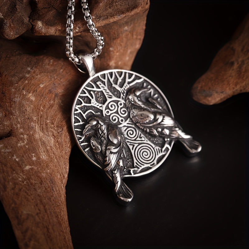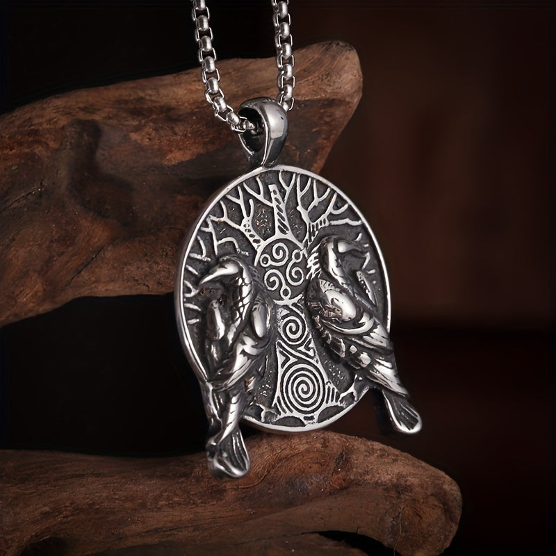 This vintage Nordic pendant features a stainless steel amulet in the shape of a tree of life. Perfect for men who appreciate punk jewelry.