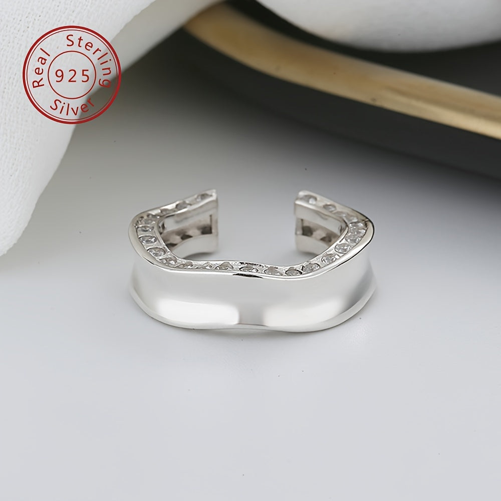 This vintage ring is made of 925 sterling silver with a wave edge design and rhinestone detailing, perfect for parties and special occasions. It weighs 5.1g and has a polished finish, making it a versatile piece of party wear.