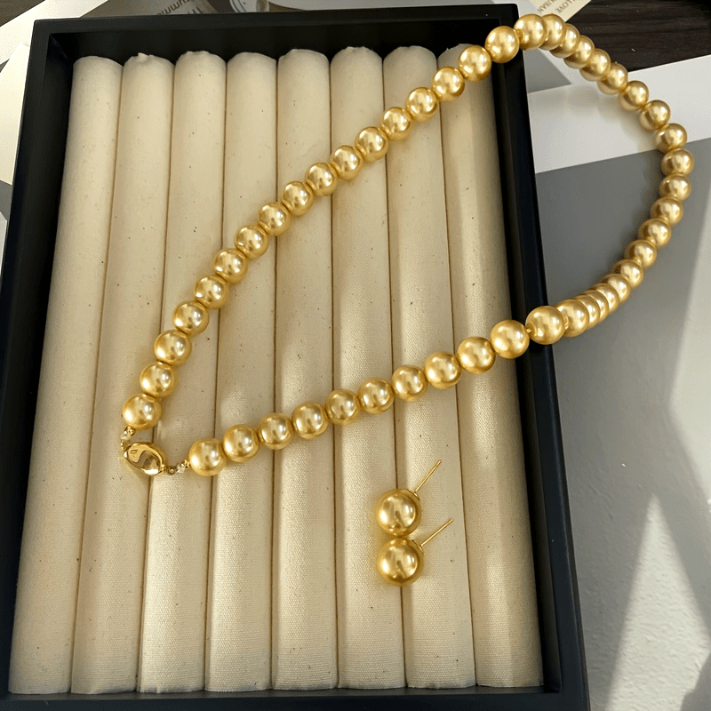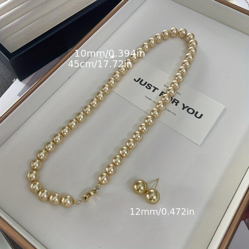 Complete your look with this elegant vintage-style pearl necklace and earrings set. Made with 10mm synthetic pearls and sterling silver, this set is perfect for any occasion.