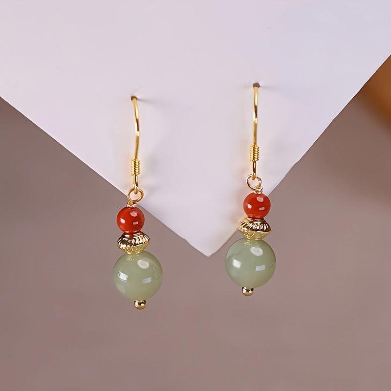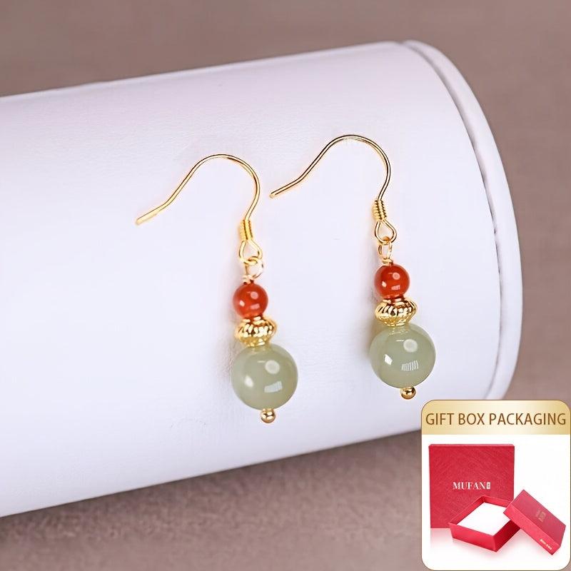 These vintage style agate drop earrings are made of high-quality 925 sterling silver with green and red agate dangles, adding a touch of elegance to any outfit.