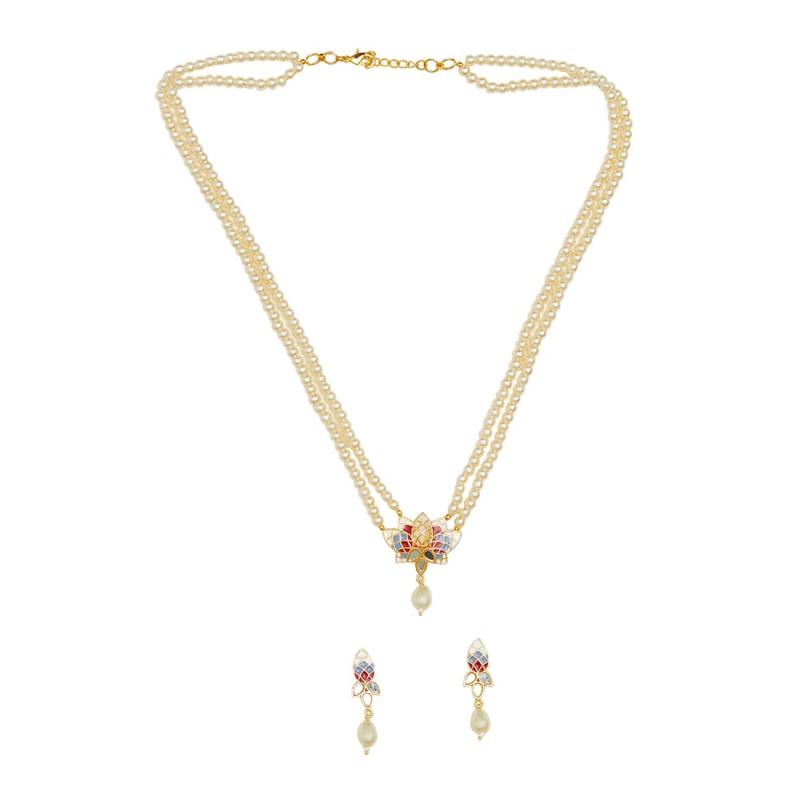 Vintage Style Brass Jewellery Set with Faux Pearls