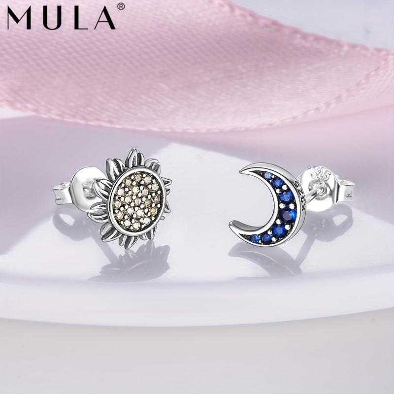These vintage style butterfly earrings feature a crescent moon sun stud design with synthetic cubic zirconia mosaic for a touch of elegance.