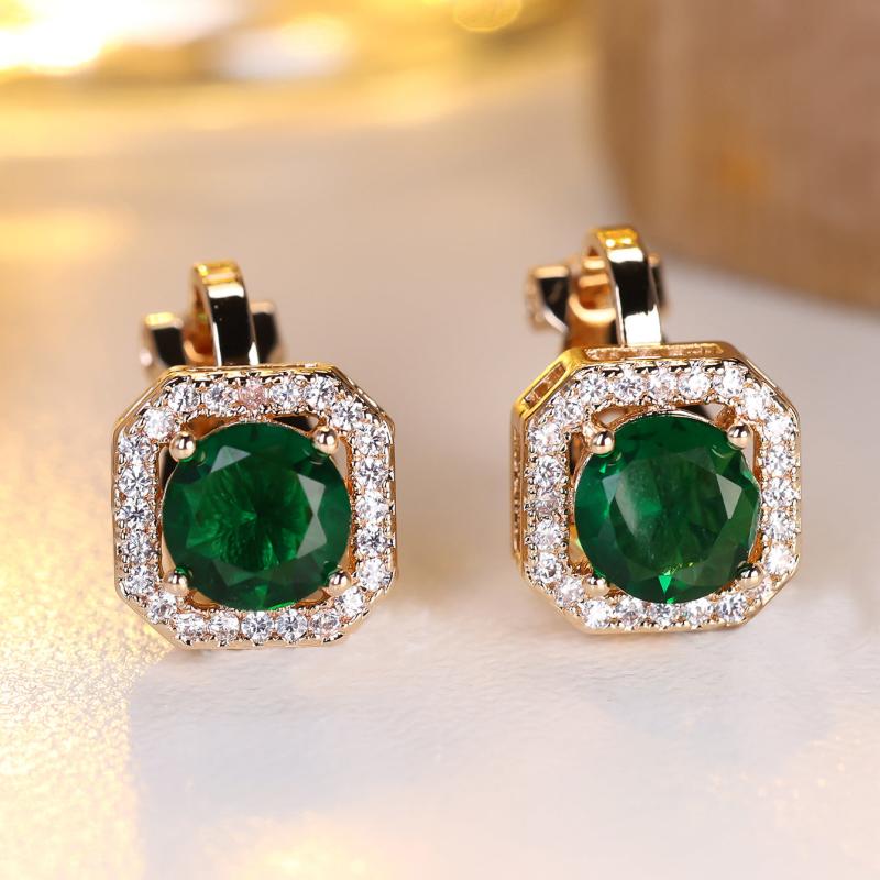 Elegant clip on earrings featuring a round synthetic zirconia center in a classic copper four prong setting with clear zirconia accents.
