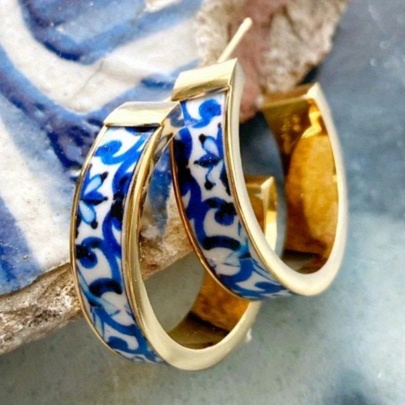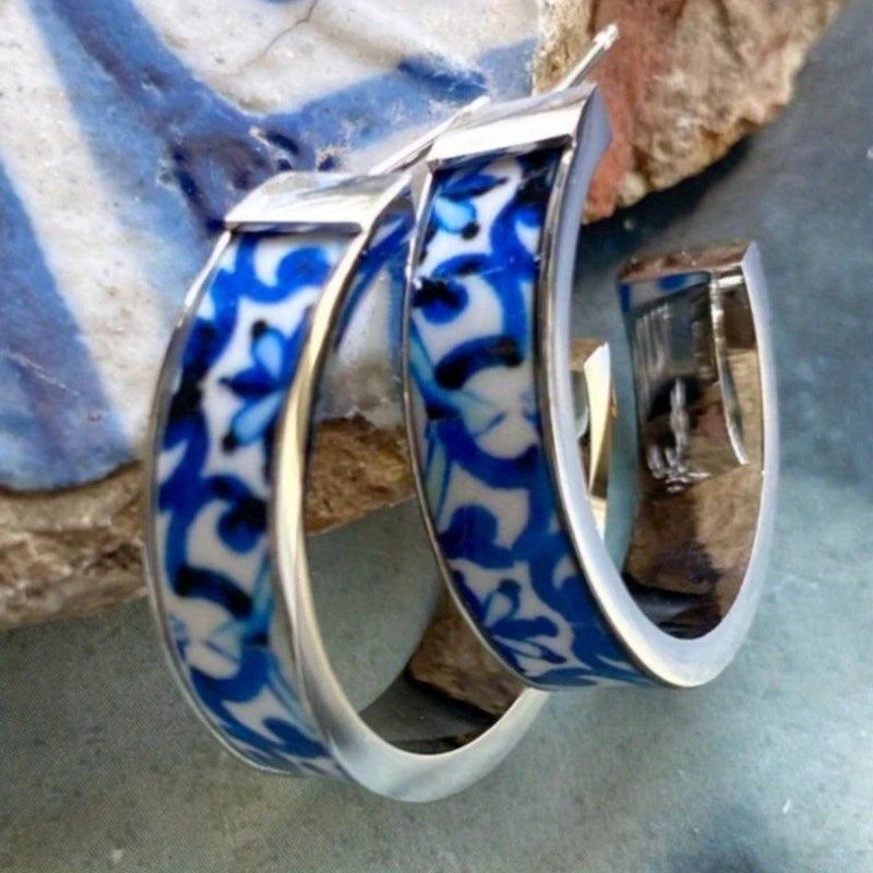 These stunning hoop earrings are inspired by vintage bohemian style and are ideal for daily wear or gifting. They feature a porcelain-inspired design that adds a touch of elegance to any outfit.