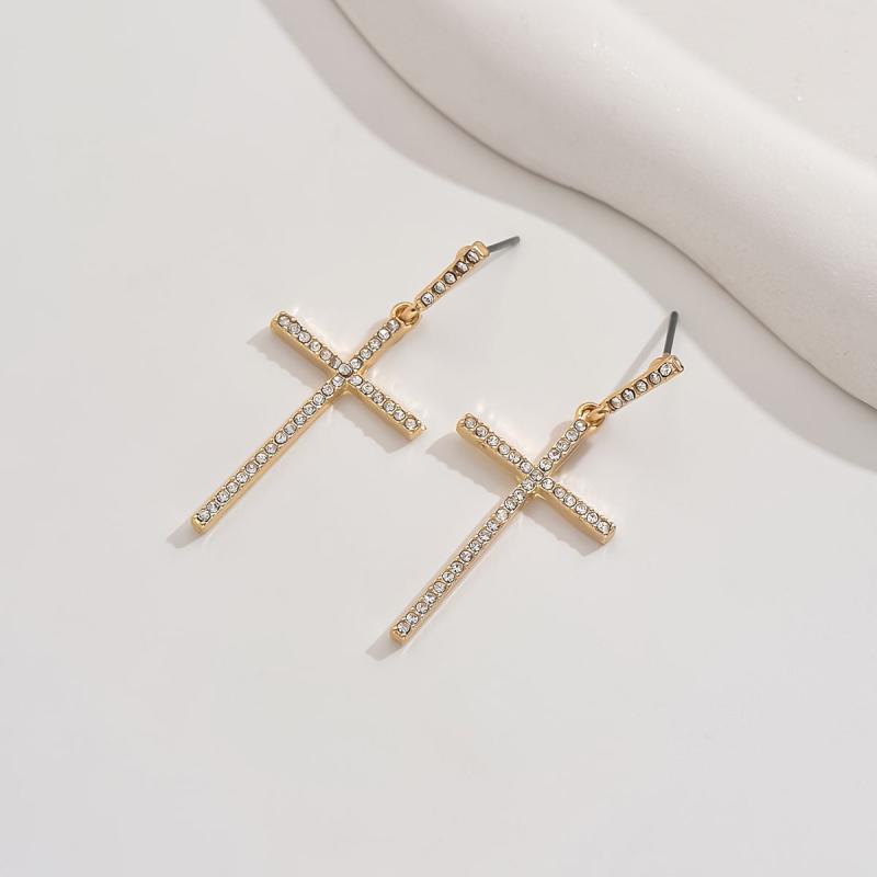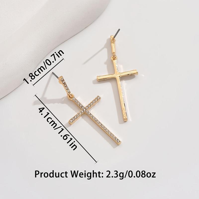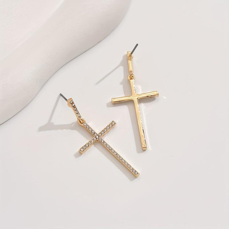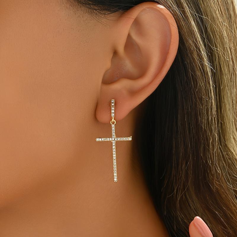 Add a touch of elegance to your outfit with these golden tone cross earrings featuring sparkling faux gemstones. Ideal for daily wear or as a thoughtful gift for women.