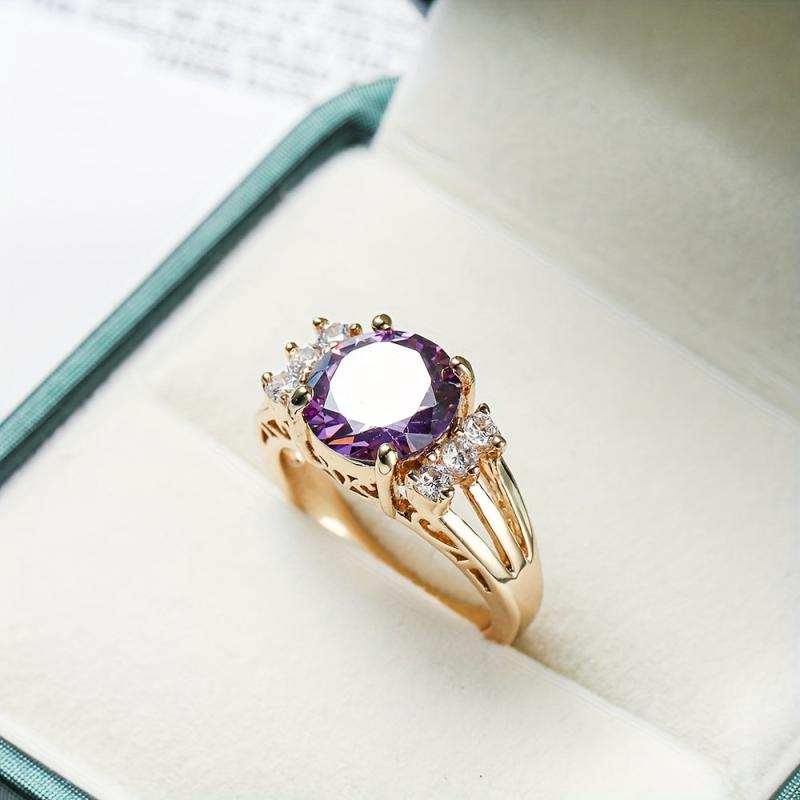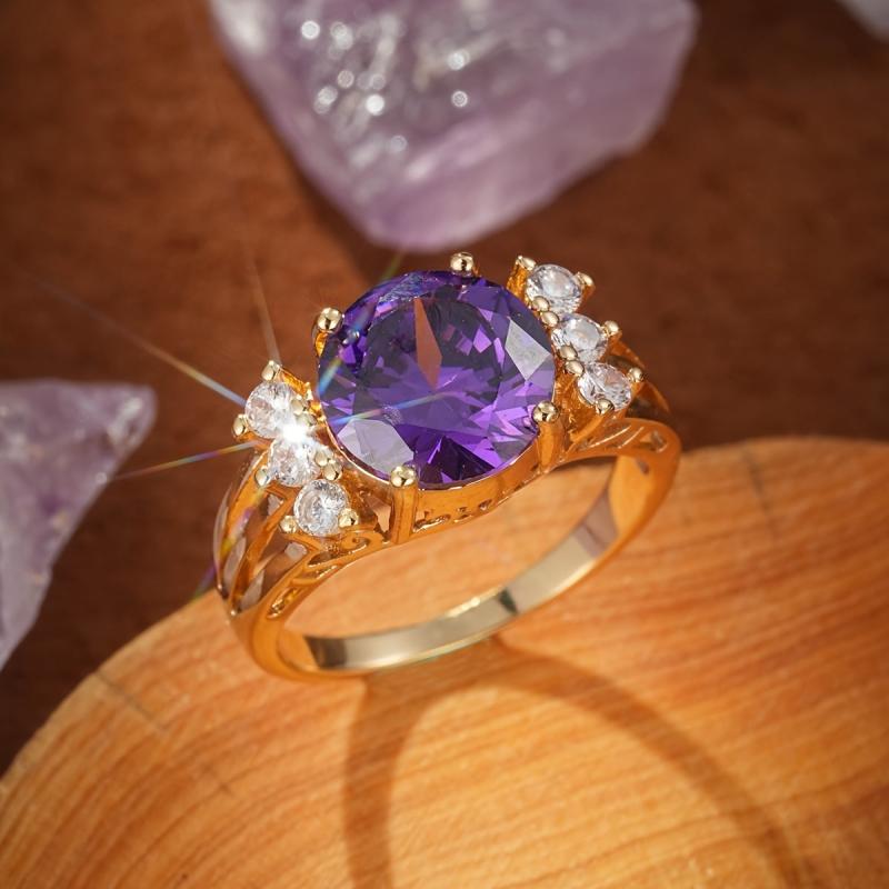 This synthetic crystal ring is perfect for parties, banquets, or gifting. It features a vintage design with sparkling accents and a golden tone metal.