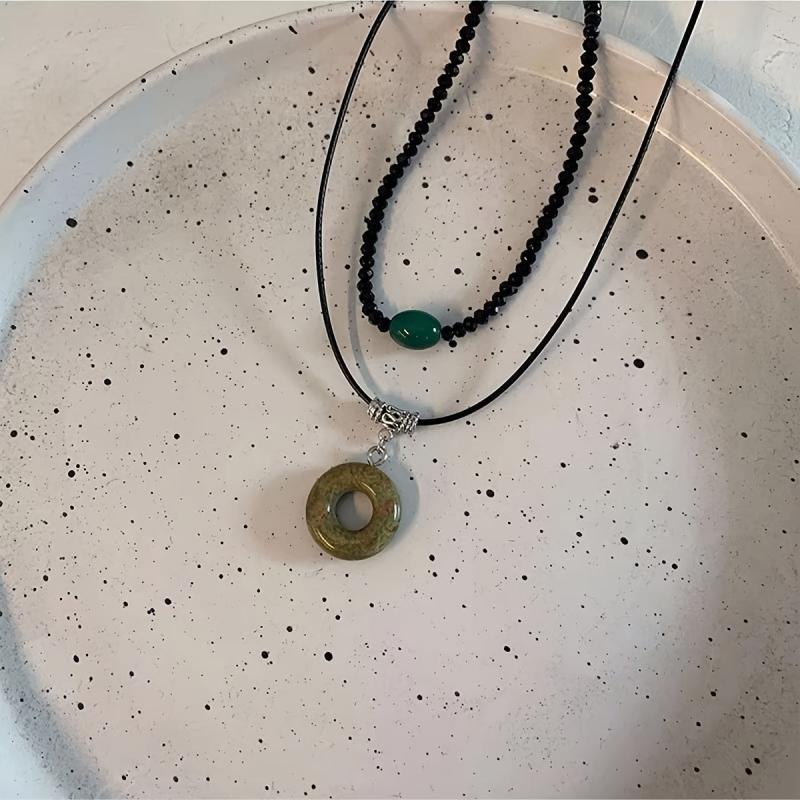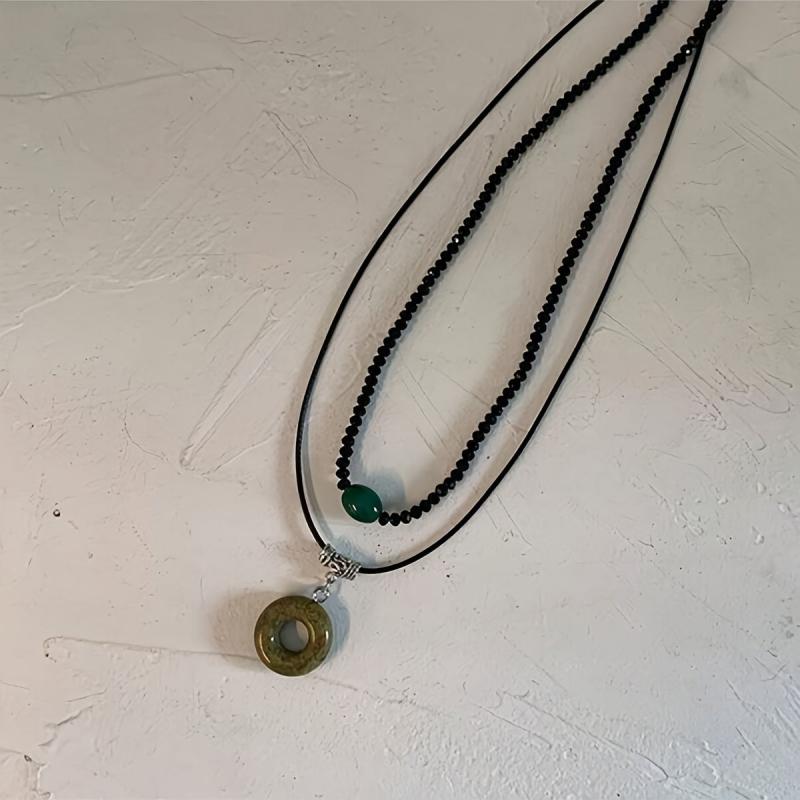 Elevate your look with this unique vintage style double layered necklace featuring a circular pendant. This high-end jewelry piece is perfect for any occasion.