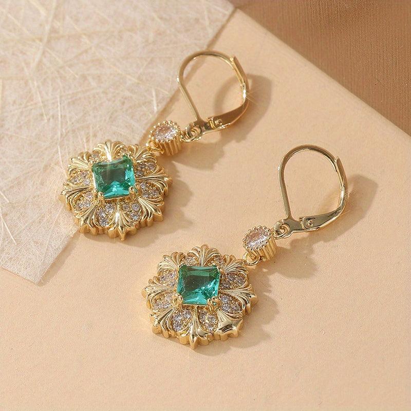 Enhance your daily look with these vintage-inspired earrings featuring copper inlaid with synthetic zirconia. The golden-plated finish adds a touch of elegance, perfect for everyday wear and travel.