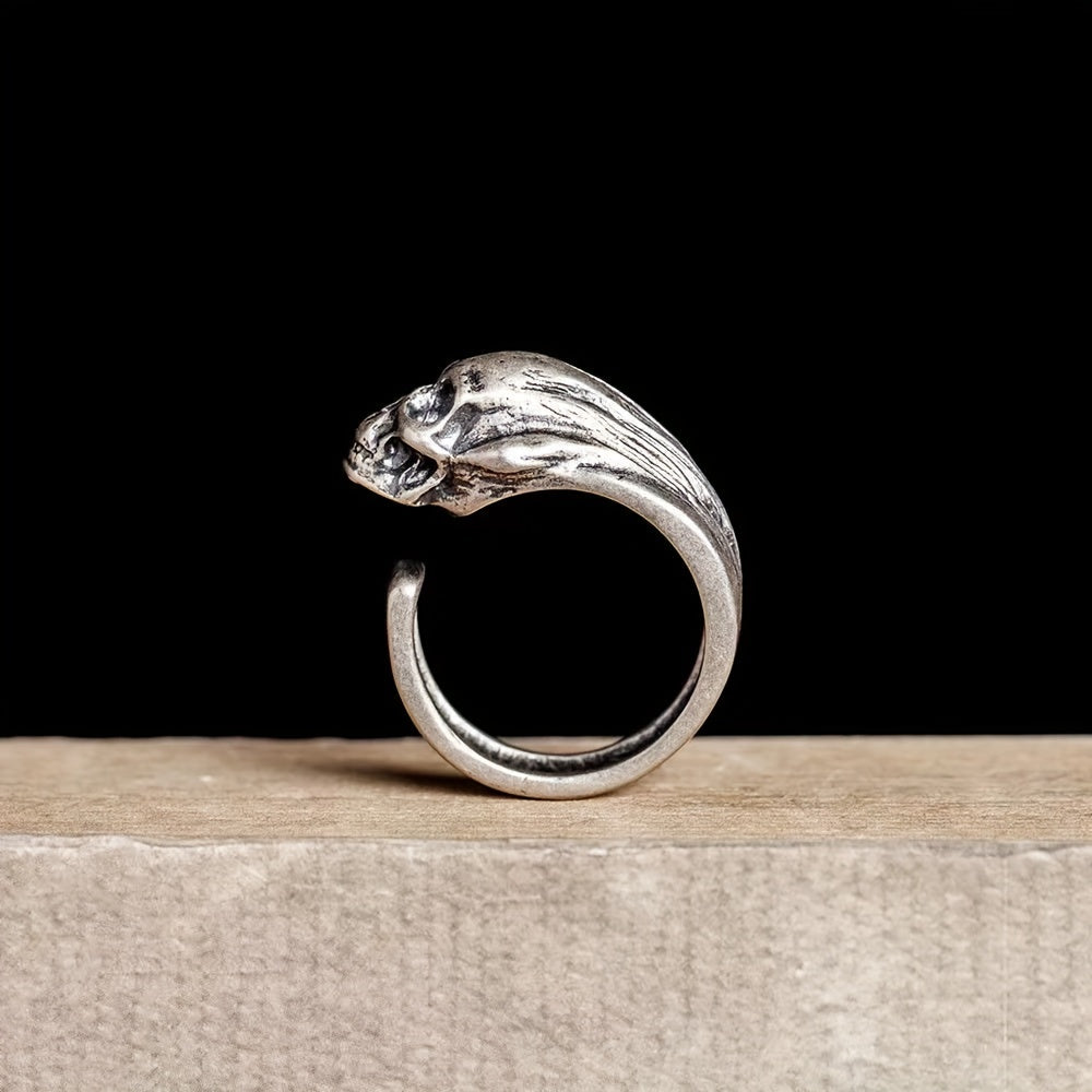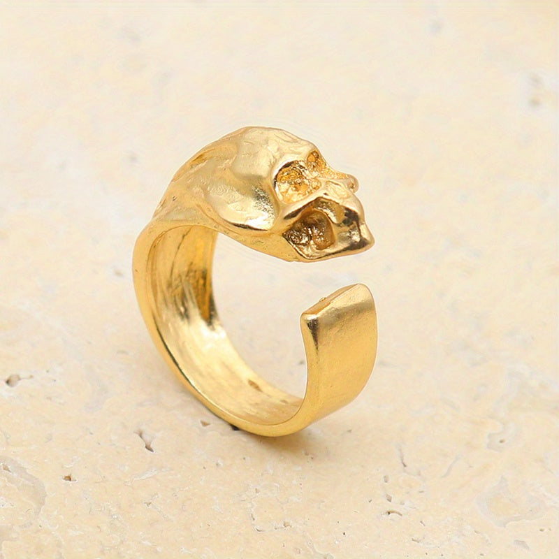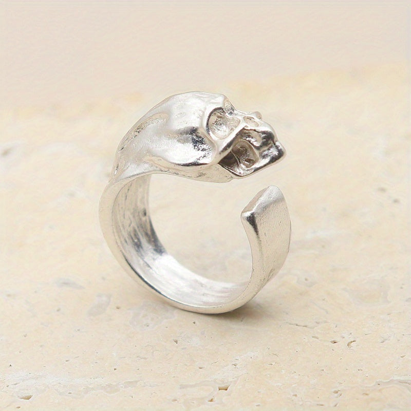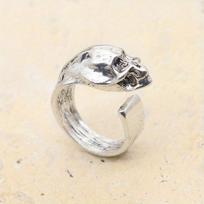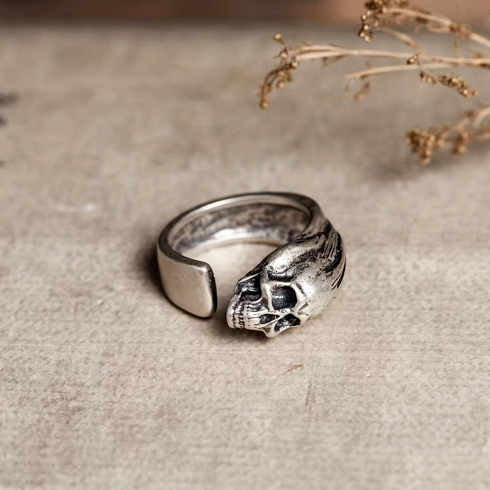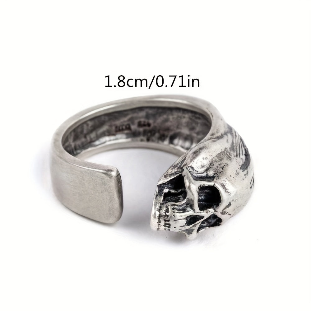 This vintage style men's ring features a skull design with a punk twist. The open adjustable design makes it a versatile accessory for any casual outfit. Makes a great gift for men who love unique jewelry pieces.
