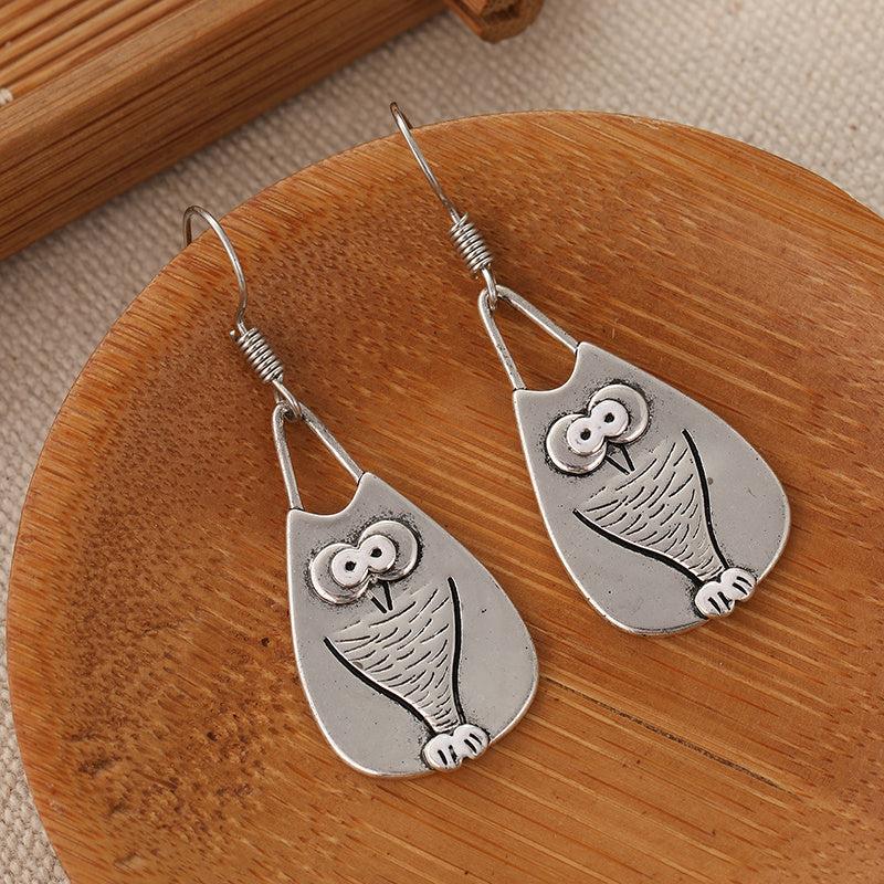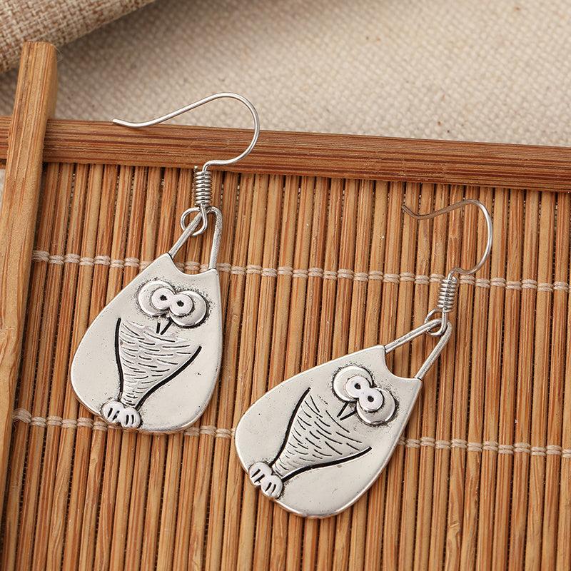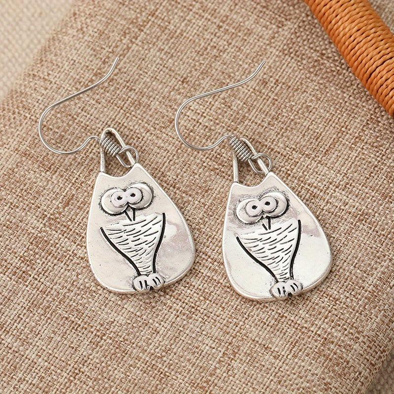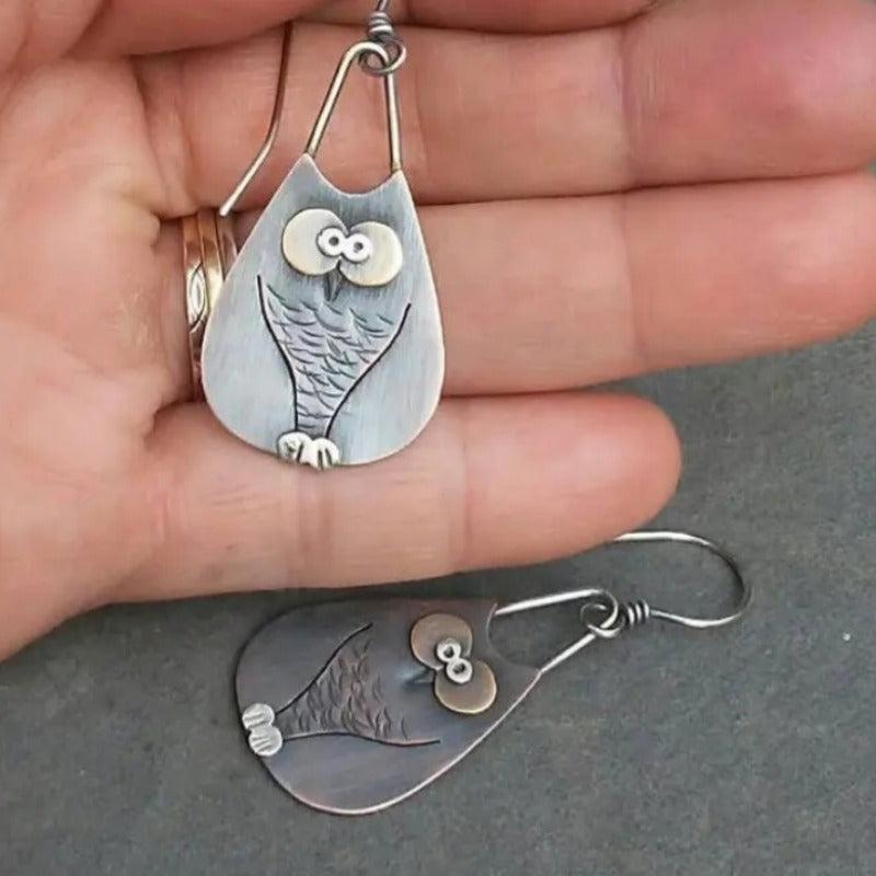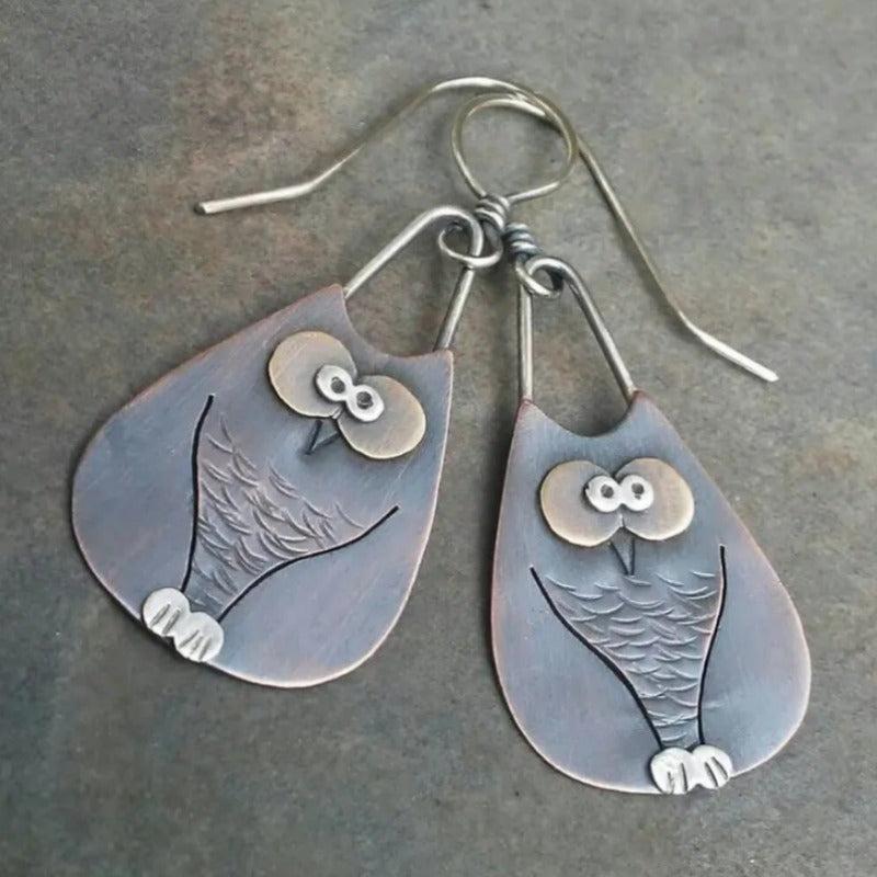 Charming retro owl pendant earrings, ideal for daily wear and parties. These quirky earrings are handcrafted with a copper-plated golden finish.
