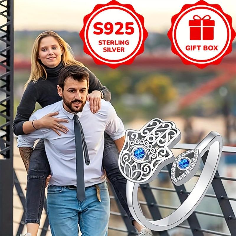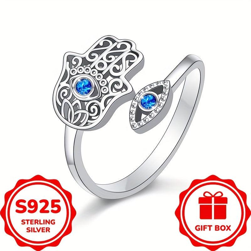 This S925 silver ring features a vintage design with synthetic zirconia inlay, suitable for daily wear and parties. The ring is adjustable to fit both men and women.
