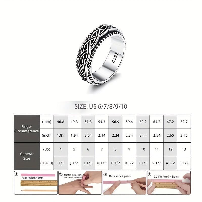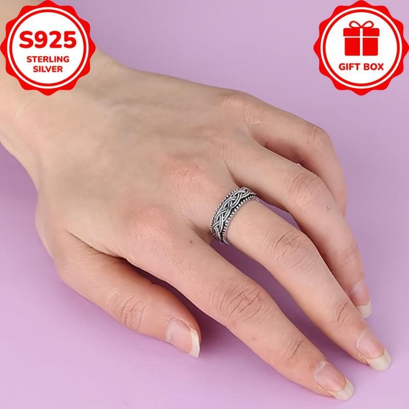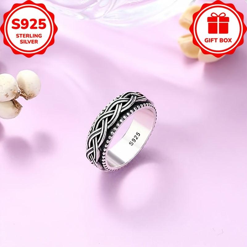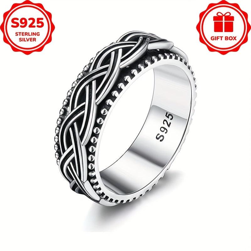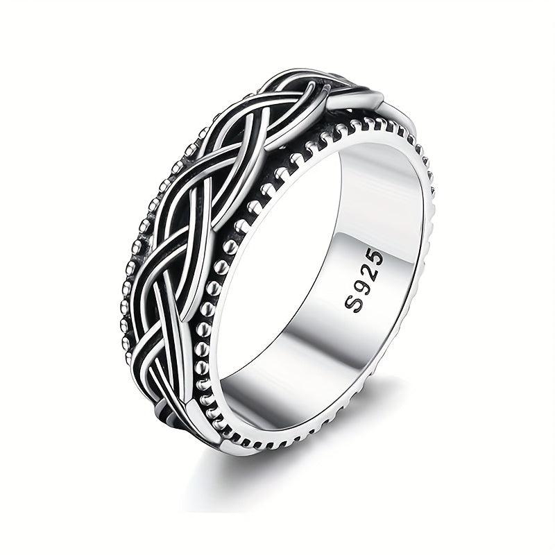 This men's and women's ring features a vintage style with a Celtic knot design. Made of hypoallergenic S925 silver, it is suitable for daily wear.
