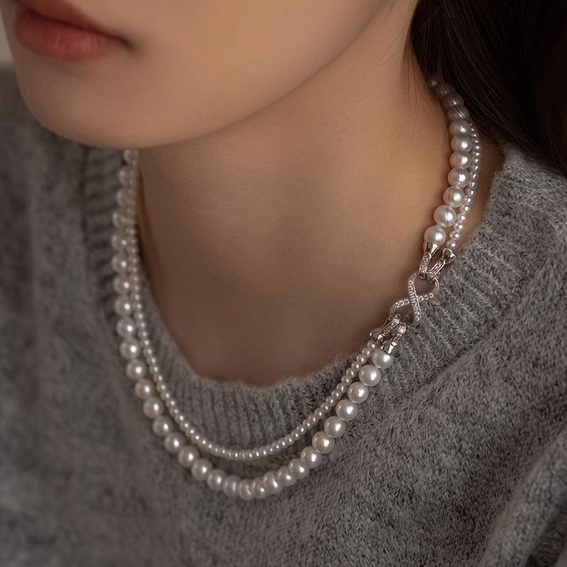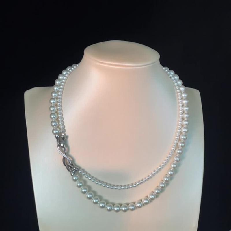 This double layered shell pearl necklace is versatile for daily wear and gift giving. Perfect for spring and all seasons.
