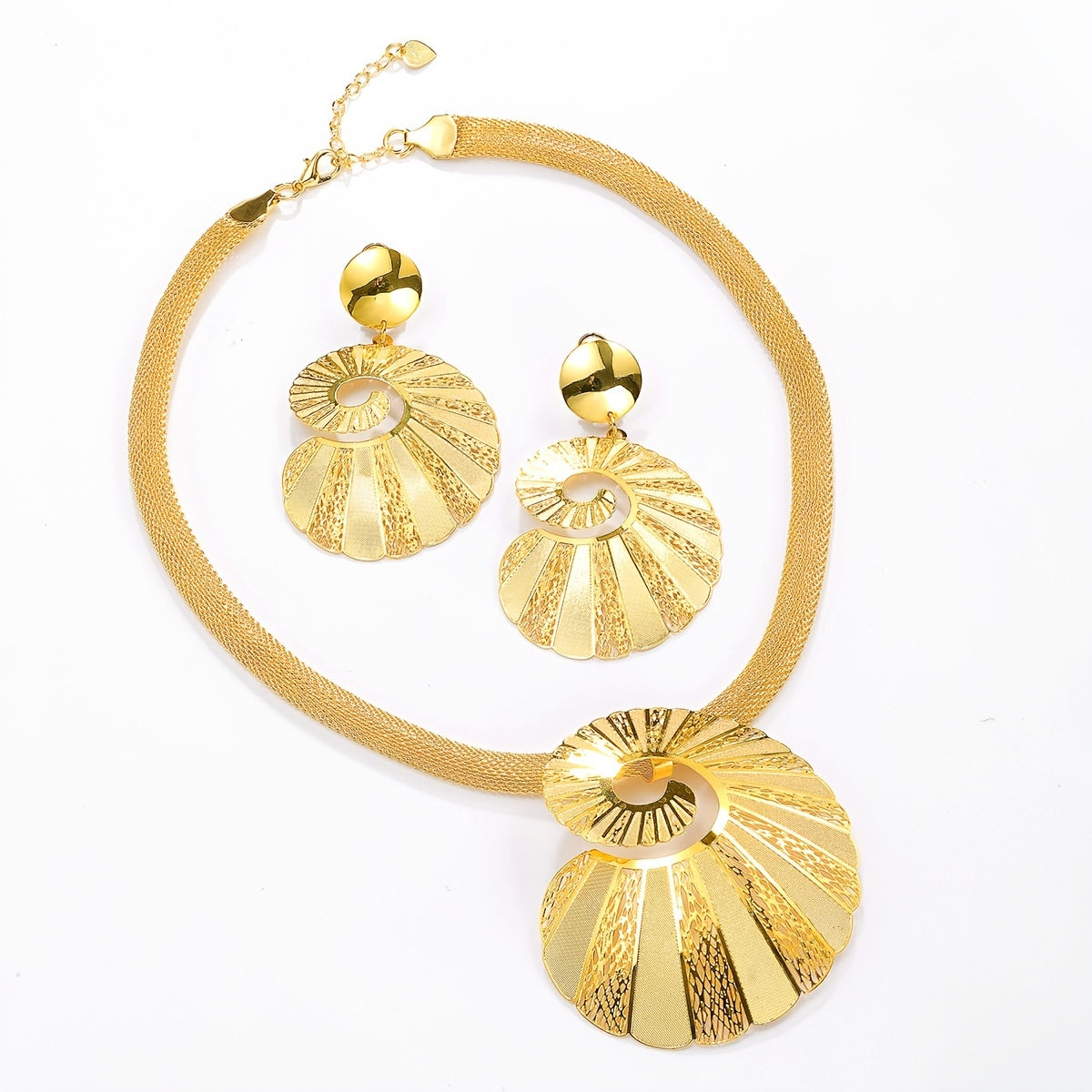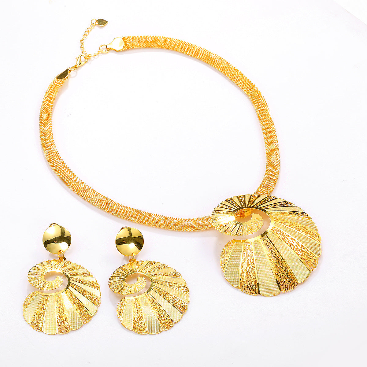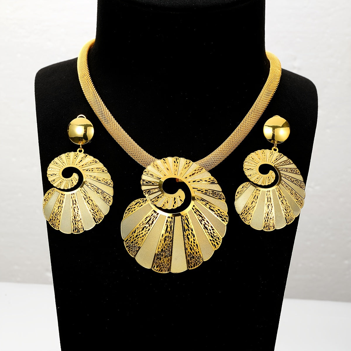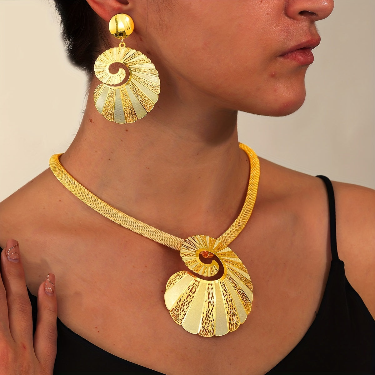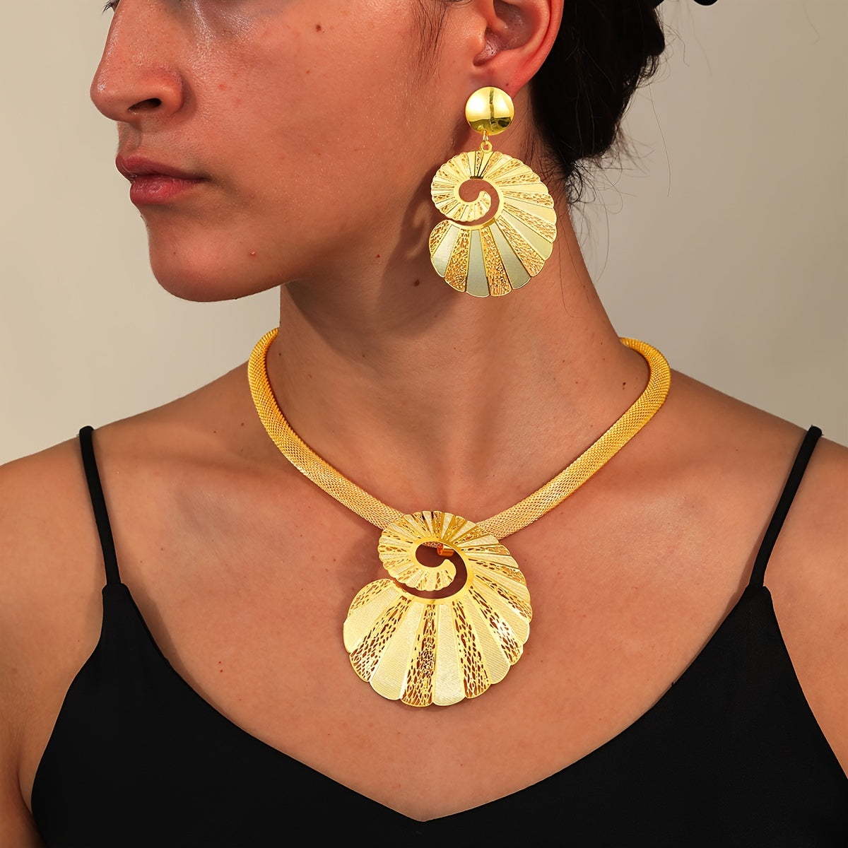 Add a touch of personality with this large spiral jewelry set. Features a pendant necklace and drop earrings in a vintage style design.