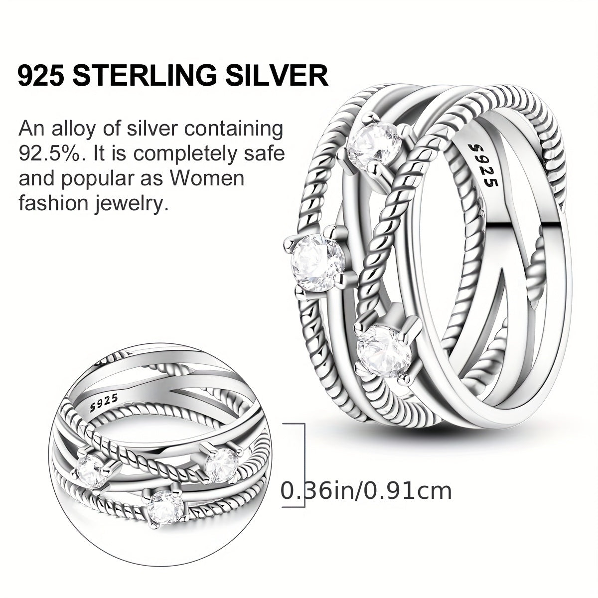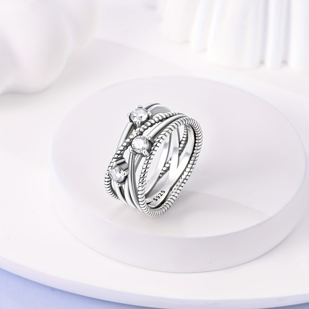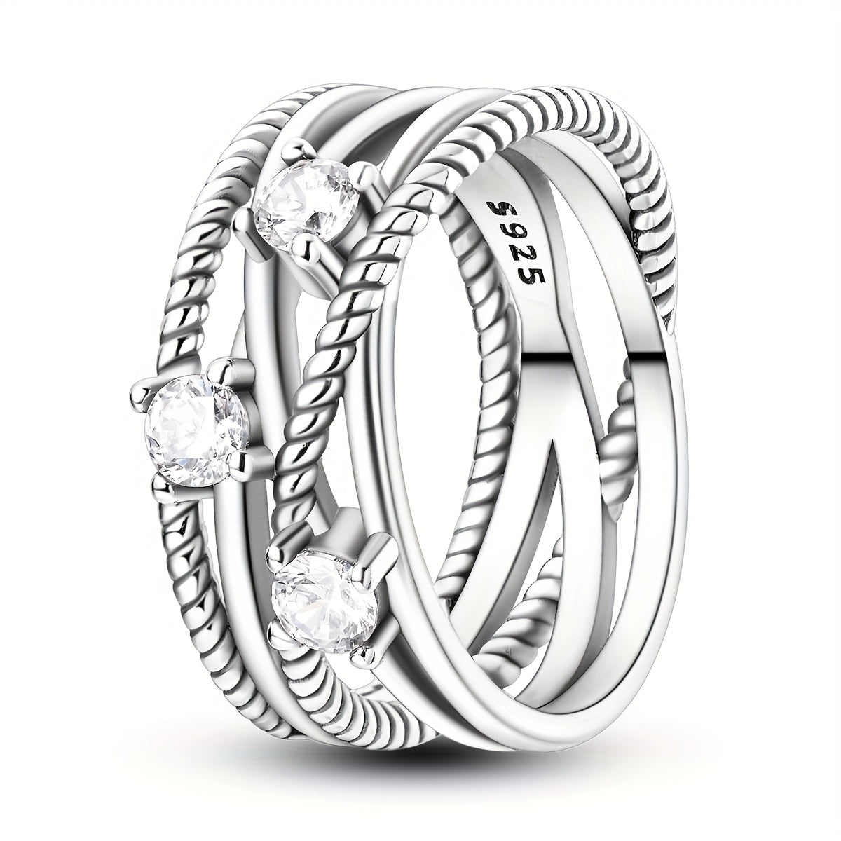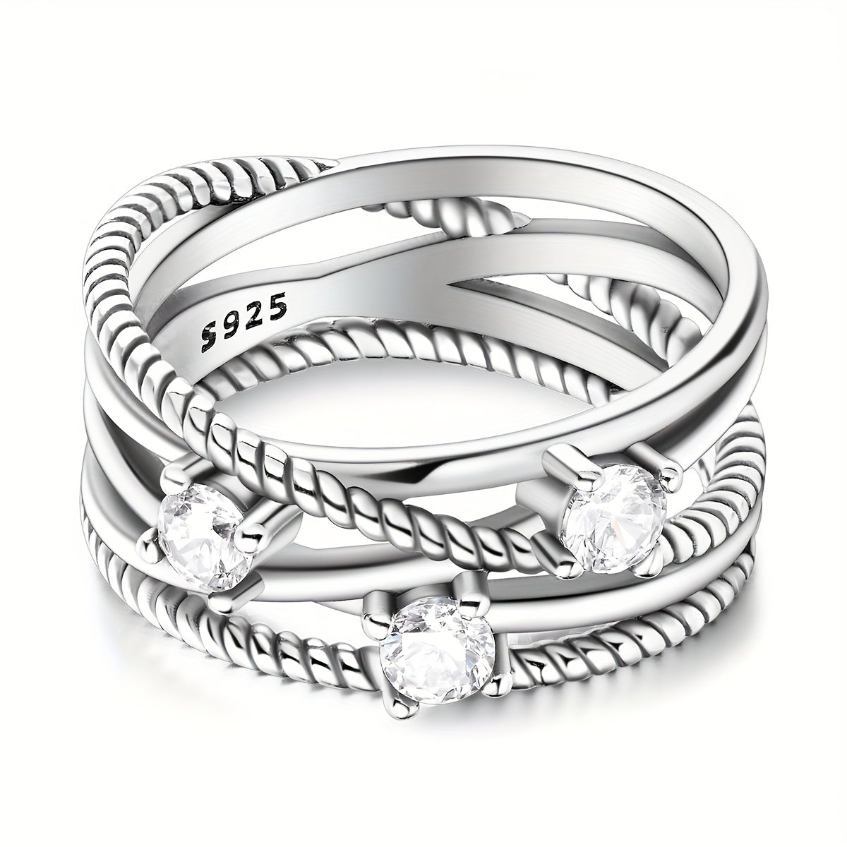 Add a touch of elegance to your look with this sterling silver ring featuring entwined lines and synthetic cubic zirconia. Perfect for stacking or as an engagement ring, this piece exudes personality and charm.