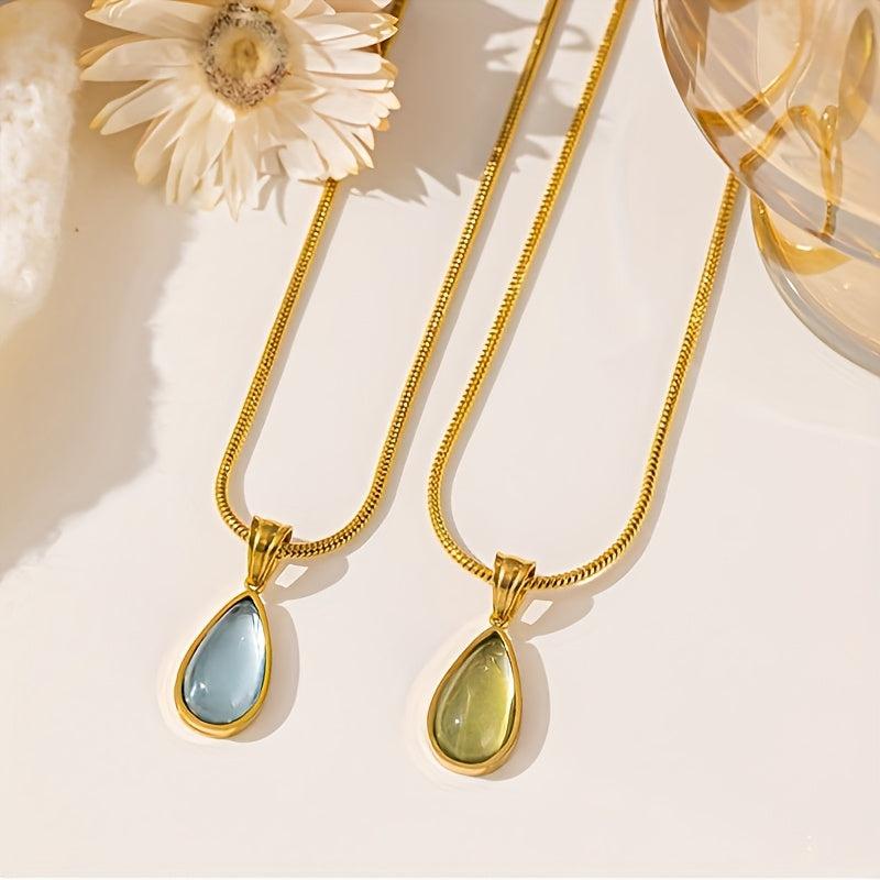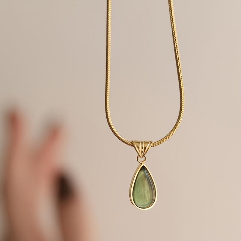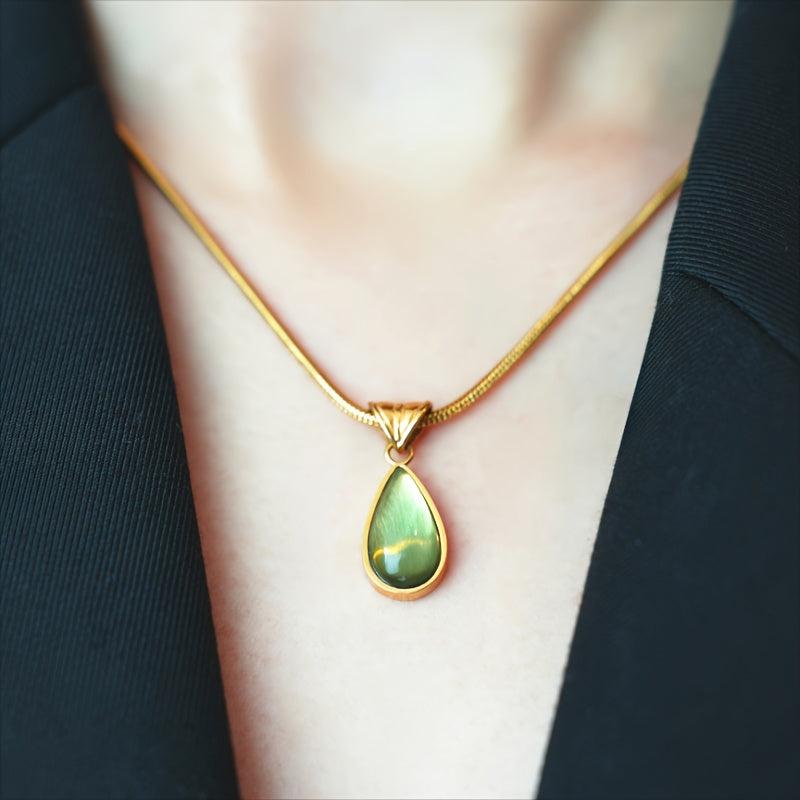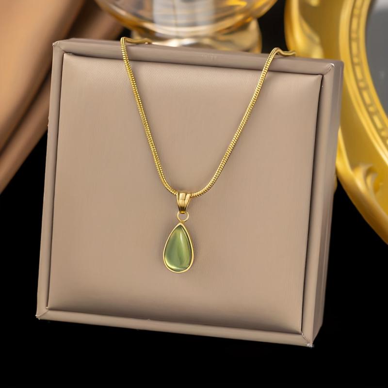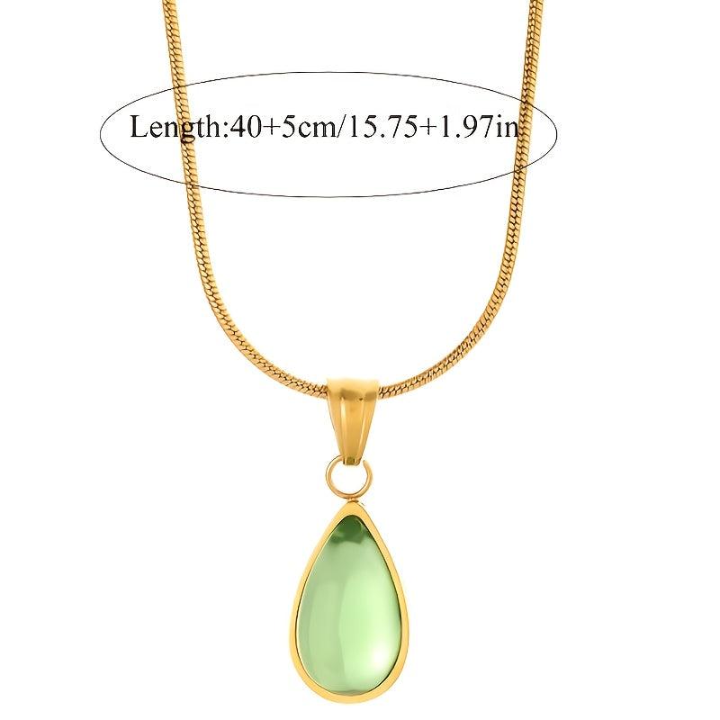 This hypoallergenic pendant necklace features a teardrop design with a green synthetic stone. Made of 316 stainless steel, it is perfect for daily wear or special occasions.