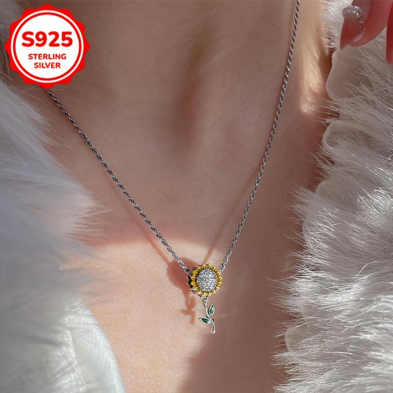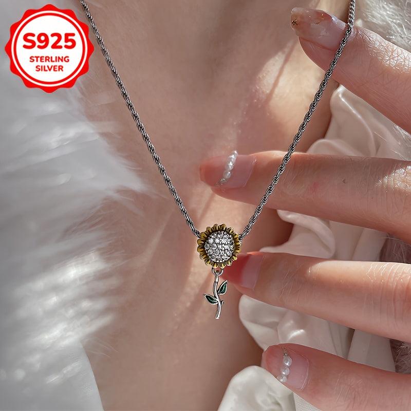 Charming sunflower daisy pendant made of S925 sterling silver, suitable for casual attire. Makes a perfect BFF gift or decorative ornament.