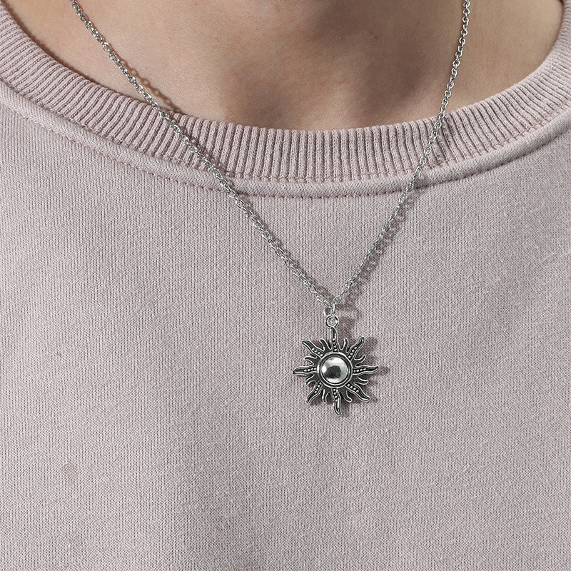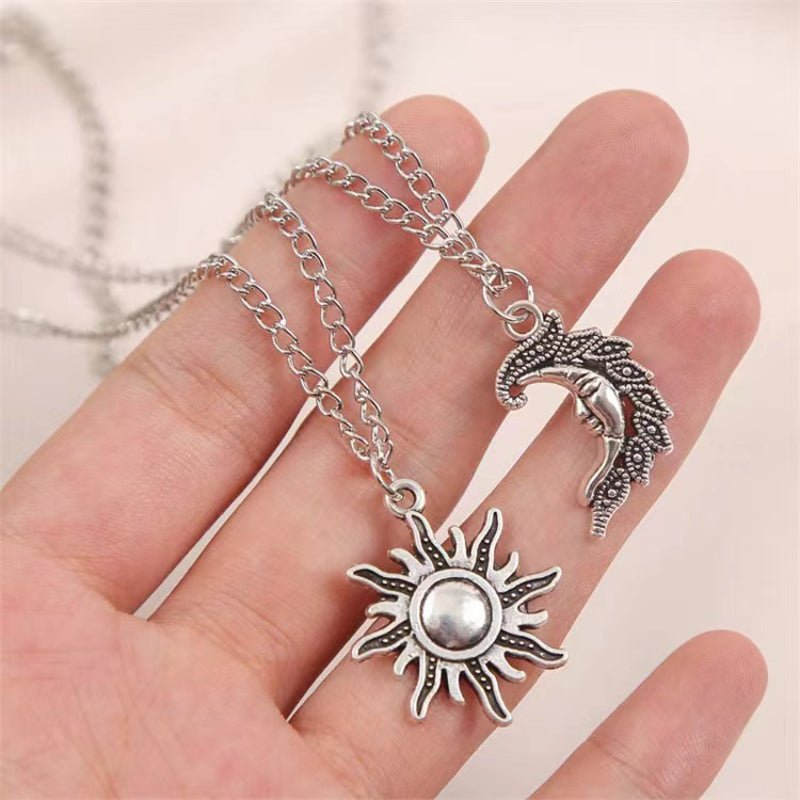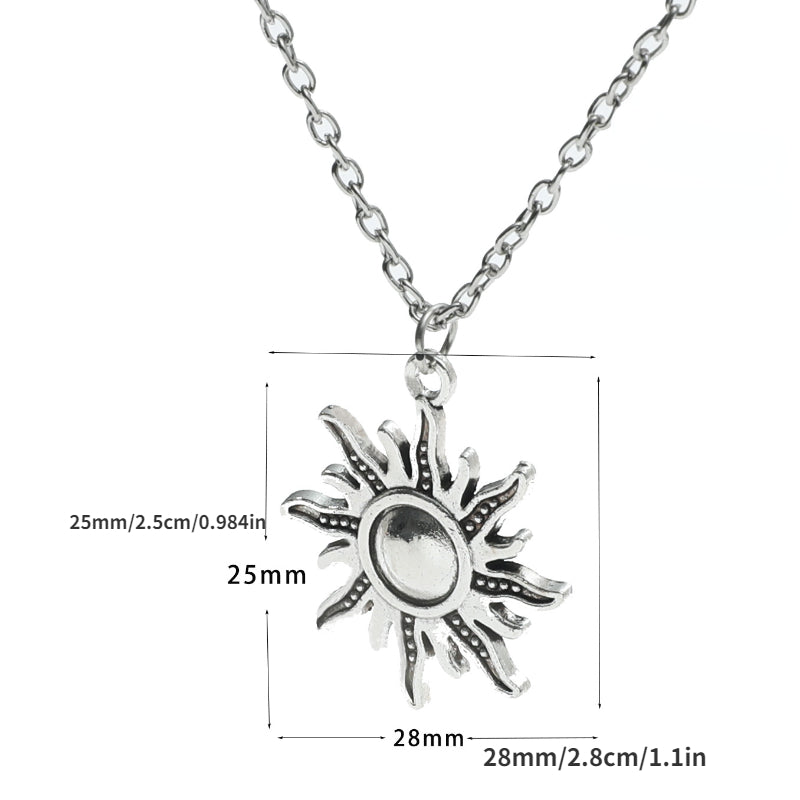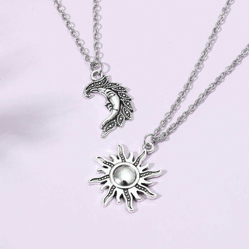This vintage alloy necklace features a sunflower and moon pendant design, making it a perfect couple's jewelry gift.