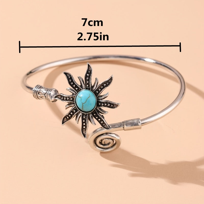 This vintage style open ring features a sunflower shape with inlaid synthetic gems, perfect for adding a boho touch to your look. Ideal for women and girls.
