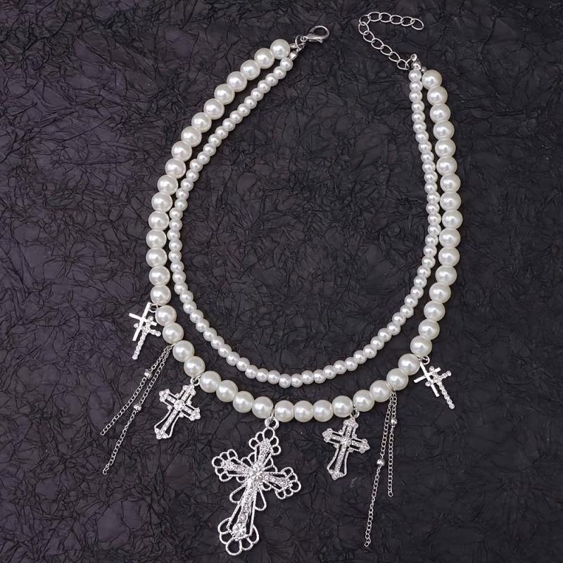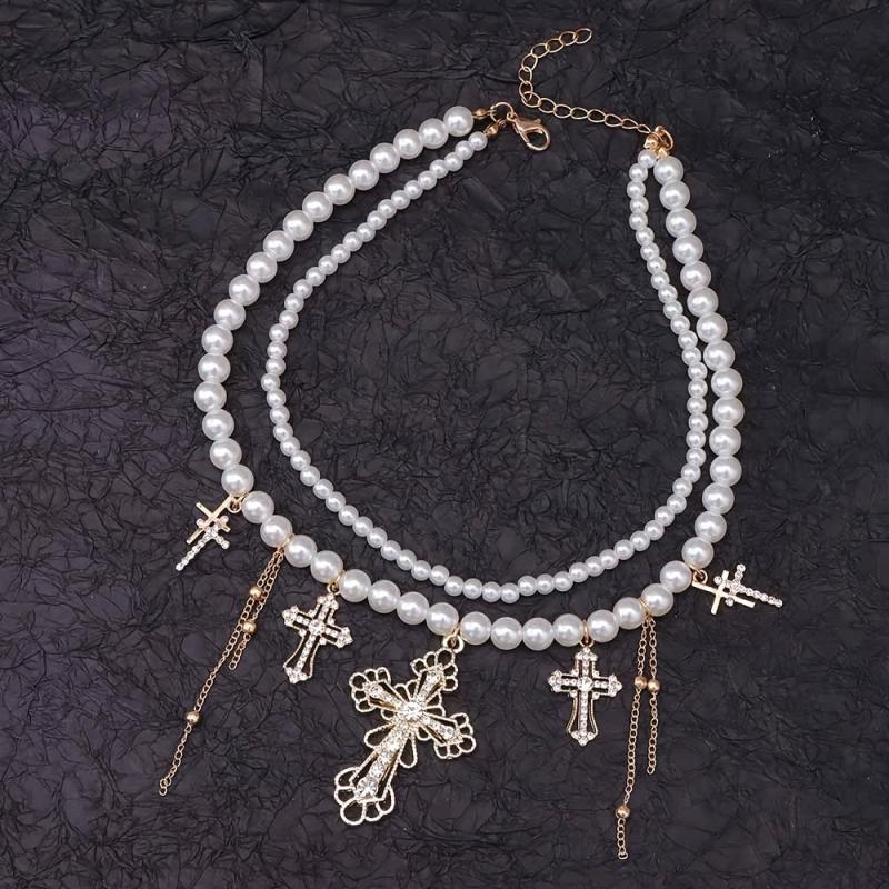 Elegant vintage-inspired tassel necklace featuring a beautiful cross pendant. Perfect accessory for a classic style.