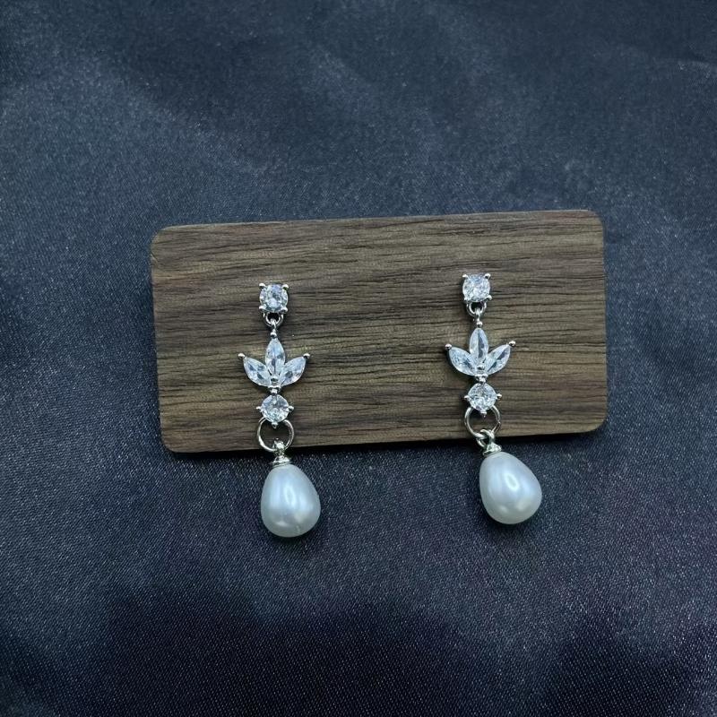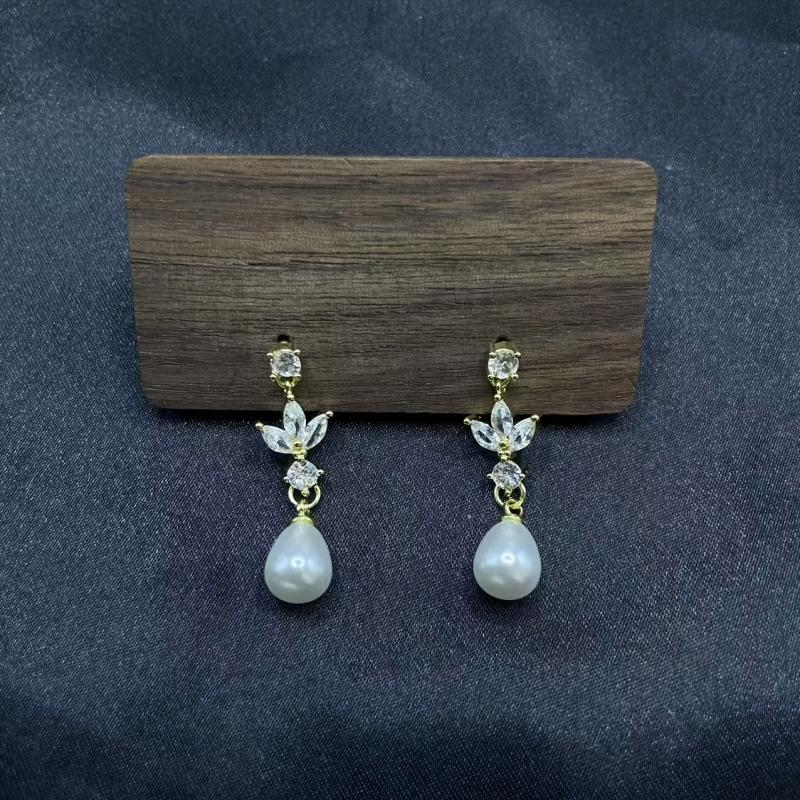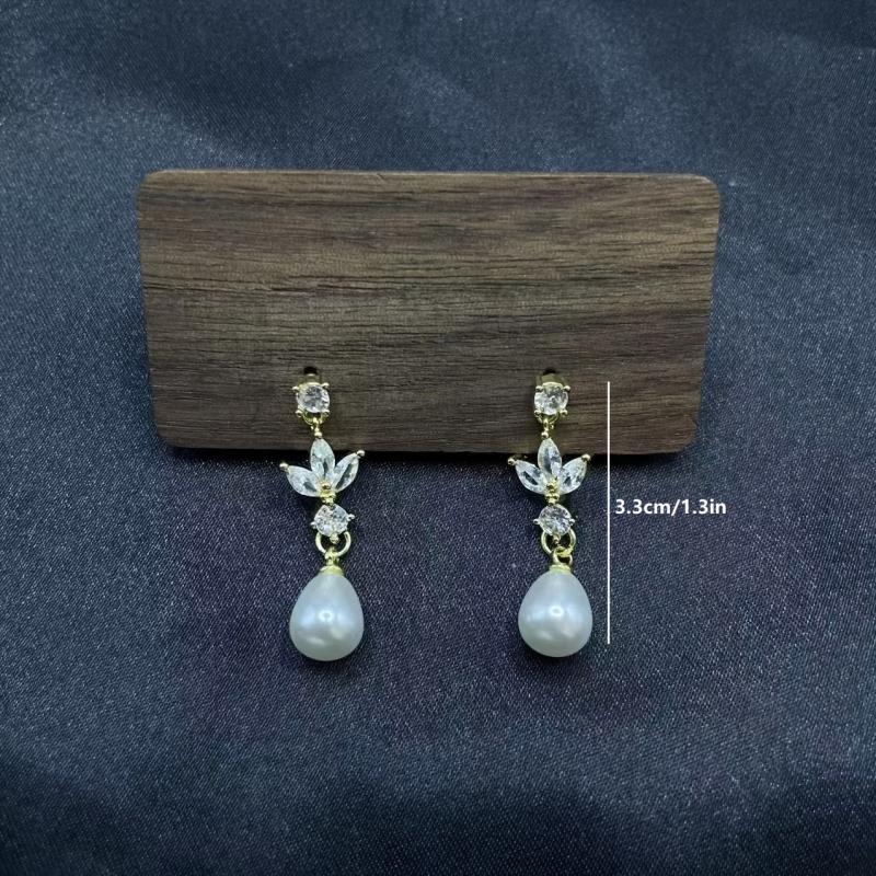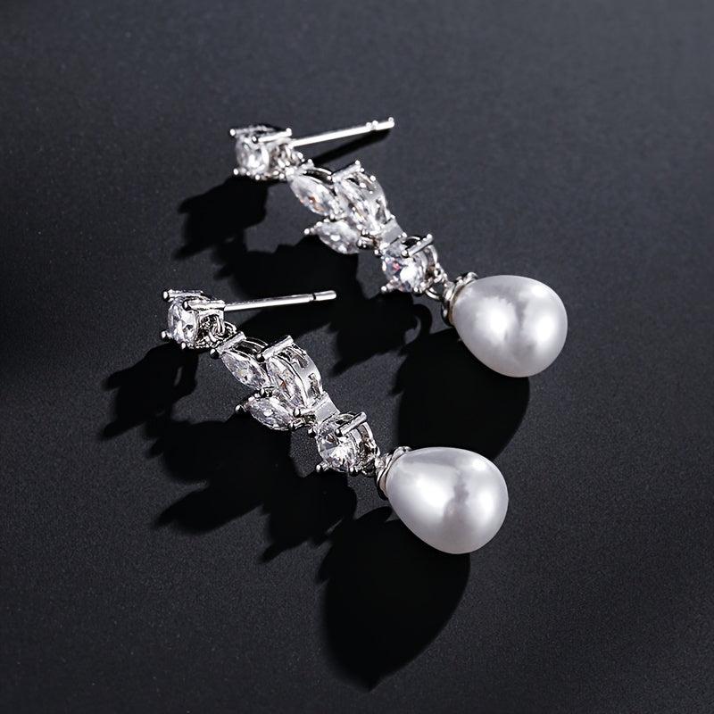 Elegant teardrop earrings featuring artificial pearls and sparkling cubic zirconia, perfect for daily wear or gifting a loved one. Embrace vintage-inspired style!
