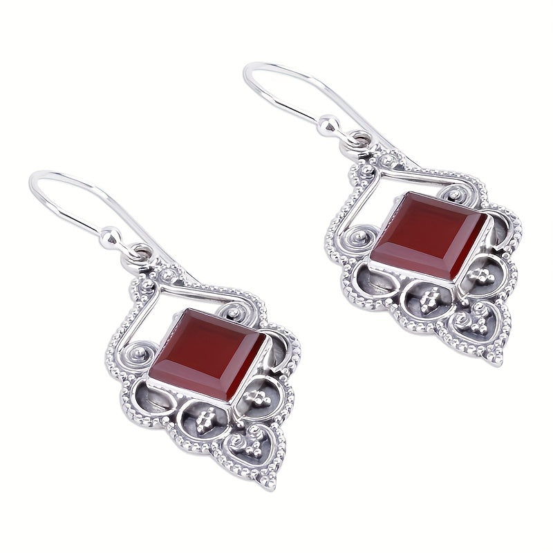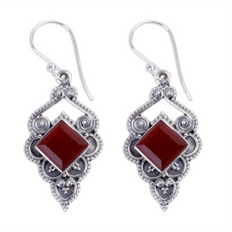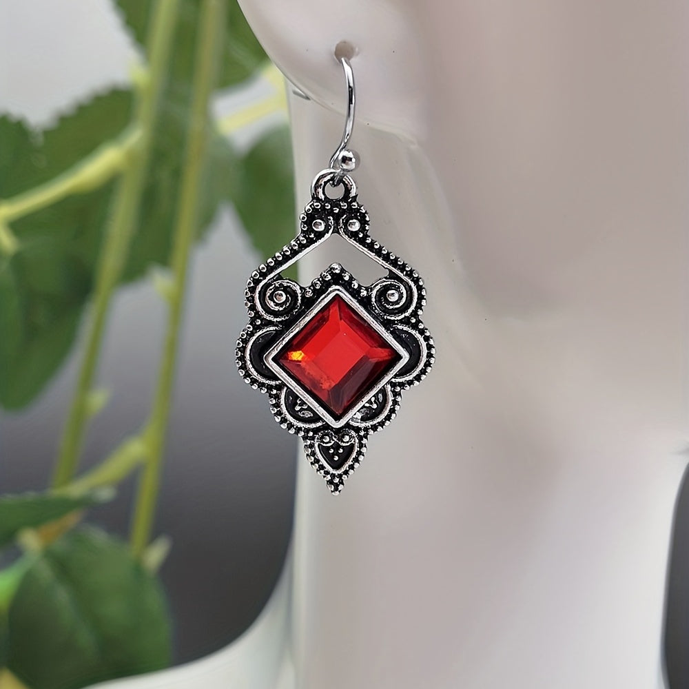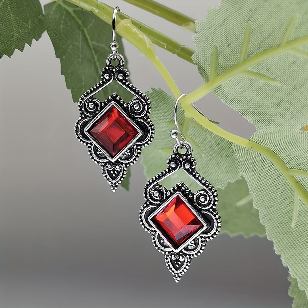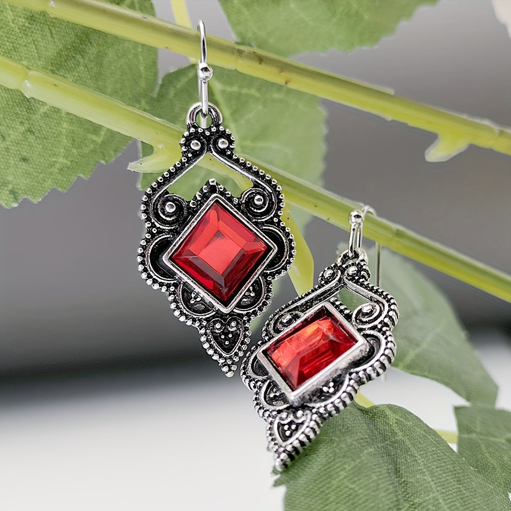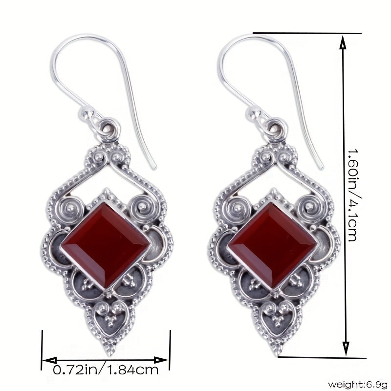 Add a touch of elegance with these inlaid ruby square rhinestone zircon earrings. The vintage Thai silver design adds a unique and stylish flair to your look.