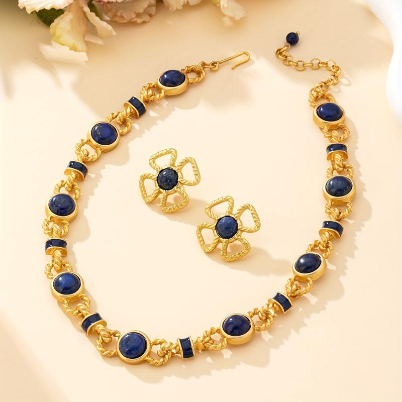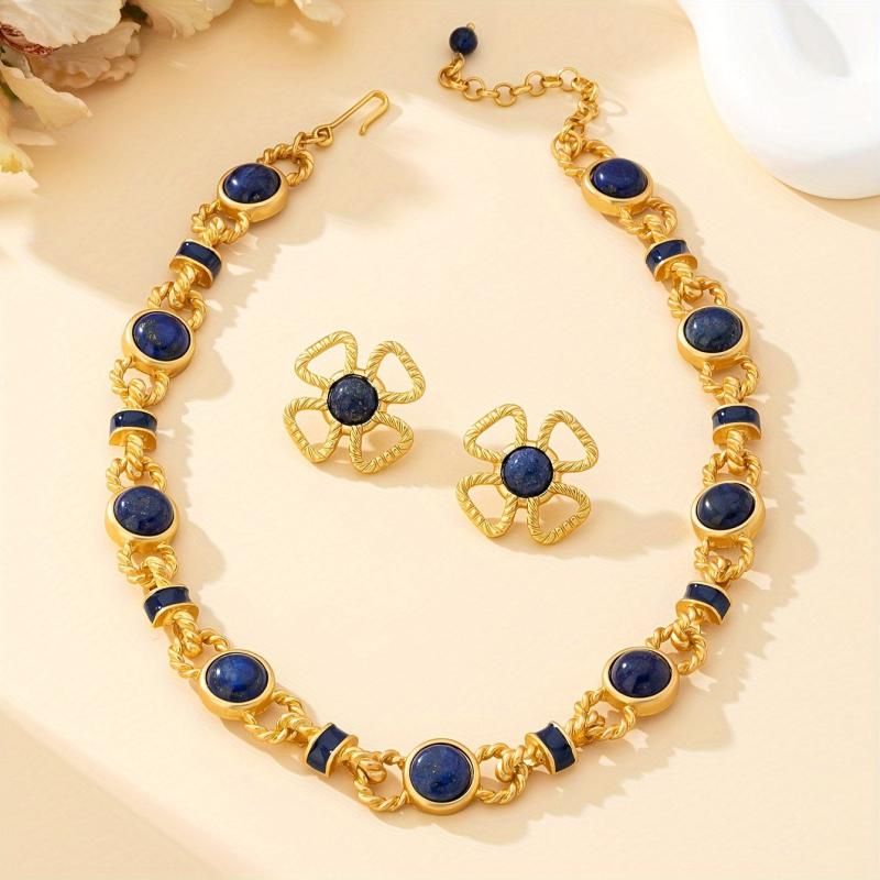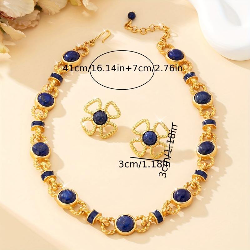 Elegant set featuring turquoise gemstones in a vintage court style design. Perfect for adding a touch of sophistication to any outfit.