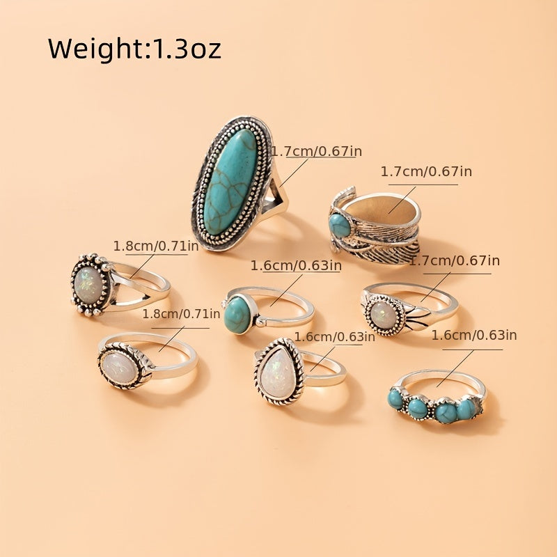 This set includes 8 vintage turquoise engraved stackable knuckle rings, making it a perfect gift for women and girls. Each ring is beautifully designed and crafted.