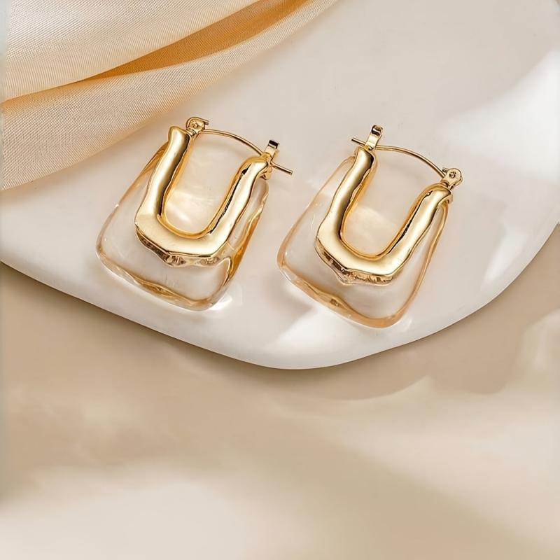Stylish hoop earrings featuring a golden tone finish and resin inlay. A perfect everyday accessory for women, great as a gift for mothers or daily wear.