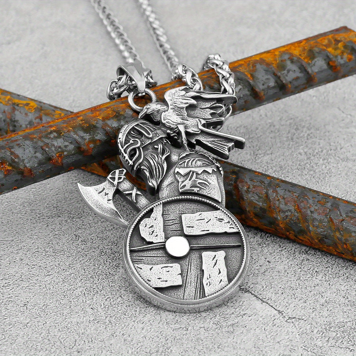 Unique pendant necklace with a vintage Viking design, perfect for adding a touch of edgy style to your look. Great for holiday parties or as a birthday gift.