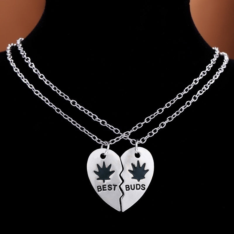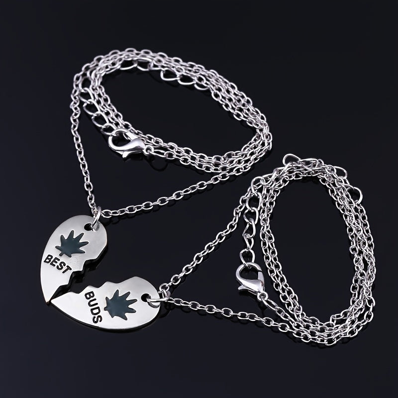Get this set of 2 vintage weed leaf pendant necklaces that are perfect for hip hop enthusiasts. Each necklace features a heart pendant chain design, making them ideal for couples, friends, or anyone who loves unique jewelry.
