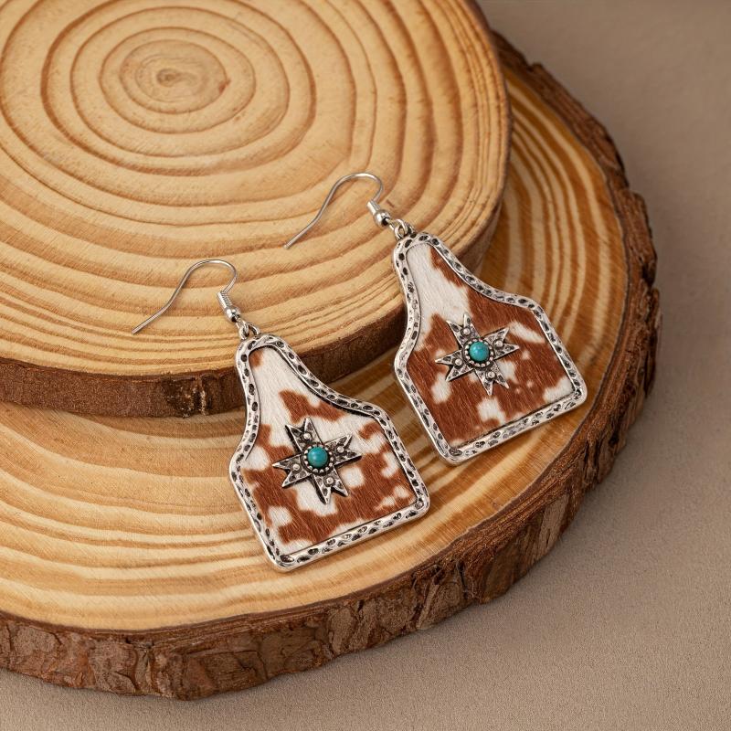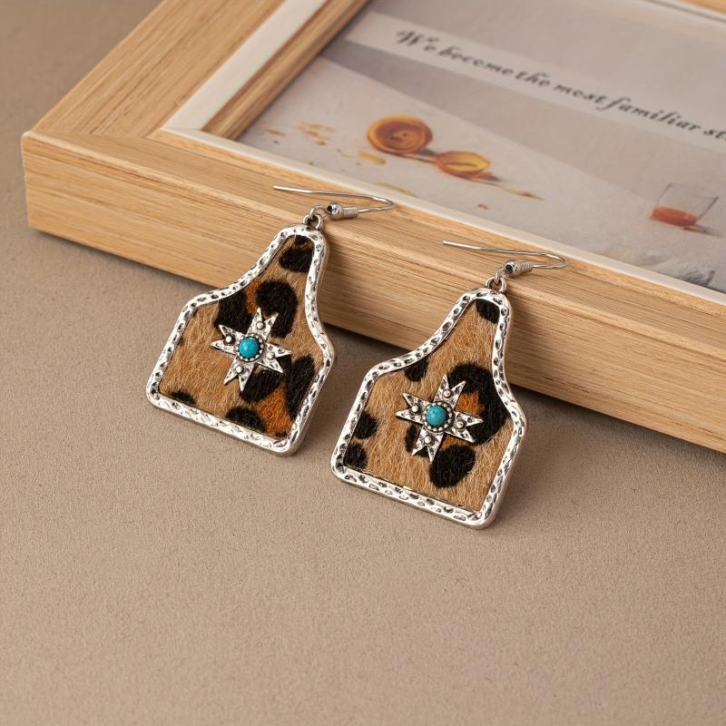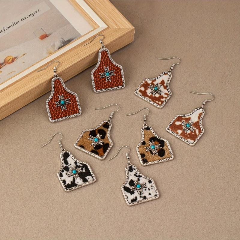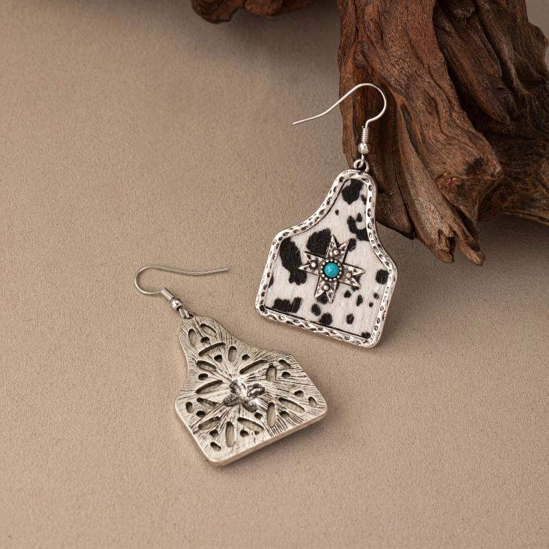 Make a bold statement with these vintage-inspired dangle earrings featuring a mix of leopard and cow print designs. Perfect for adding a touch of Western boho flair to your look.