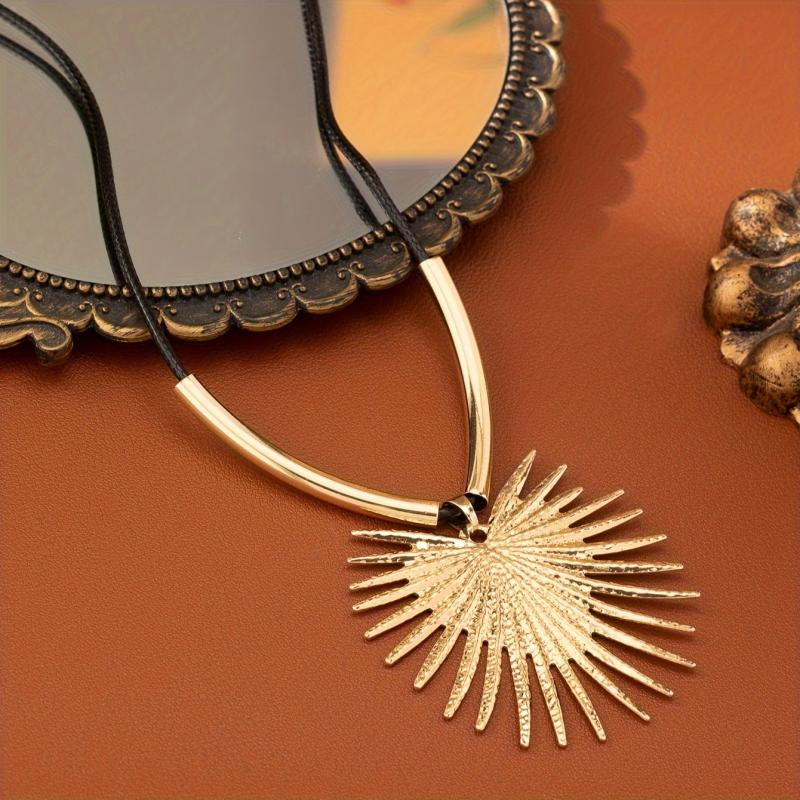 Make a bold statement with this unique geometric necklace featuring a vintage western style pendant.