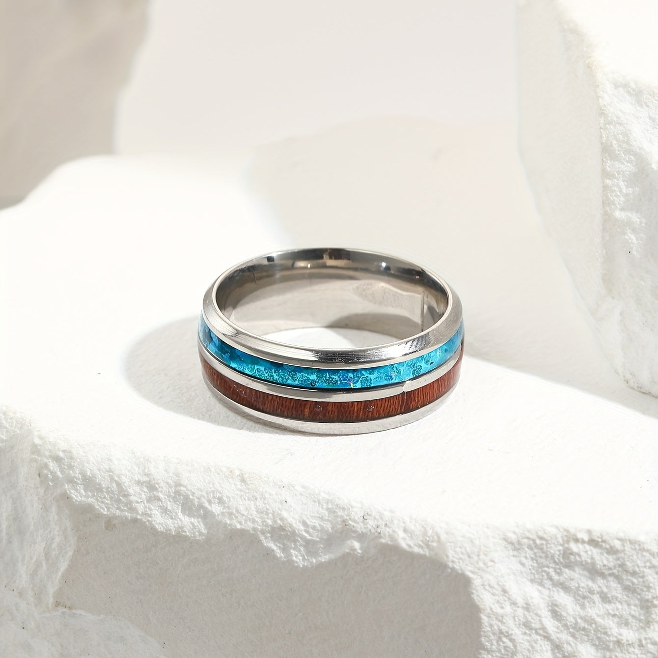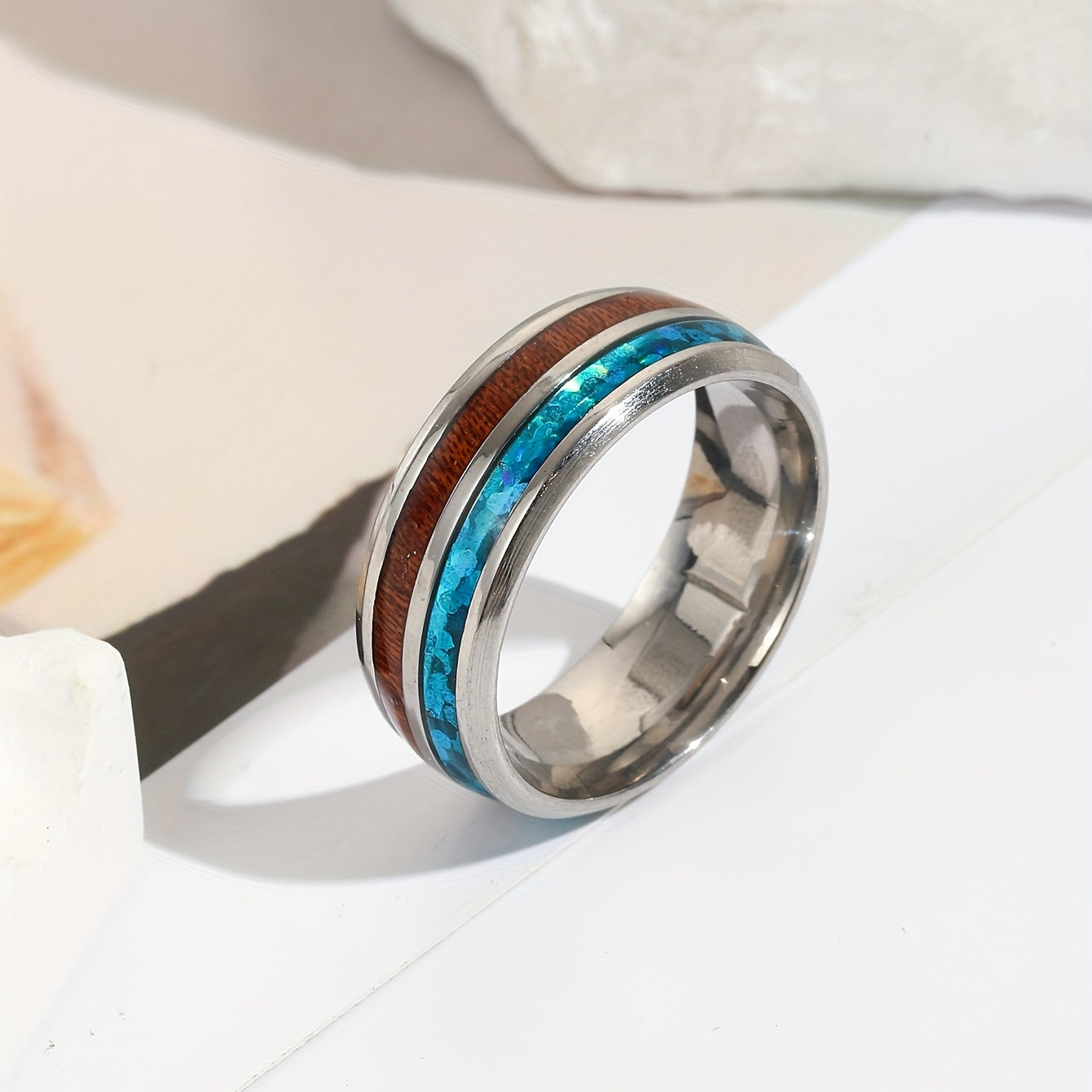 This men's ring features a vintage wood grain shell design that adds a touch of uniqueness to your style. Made of high-quality stainless steel.