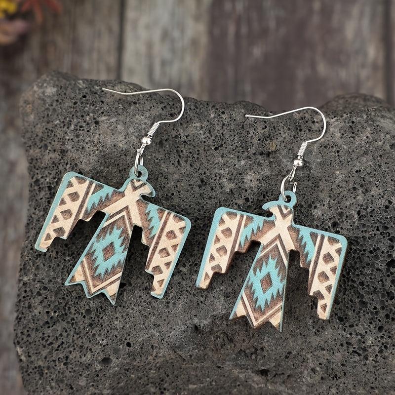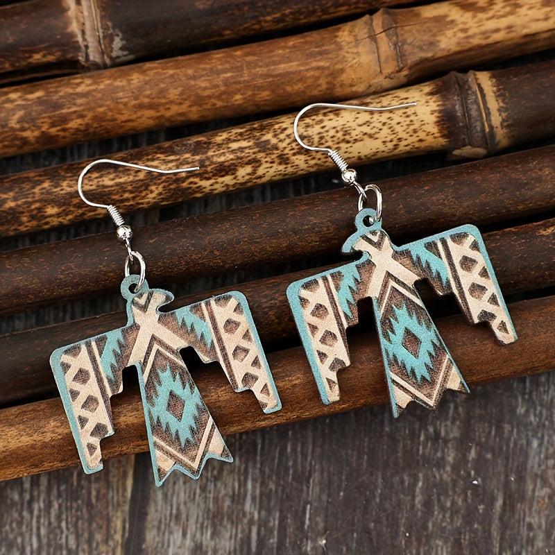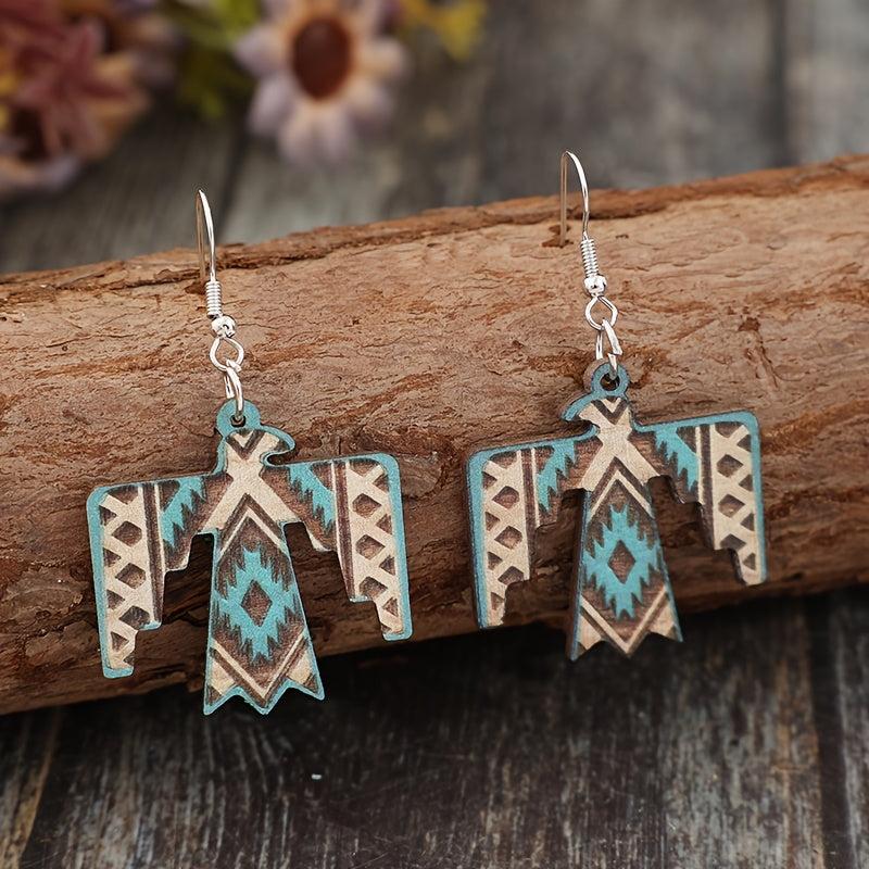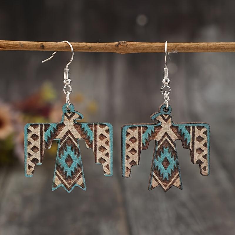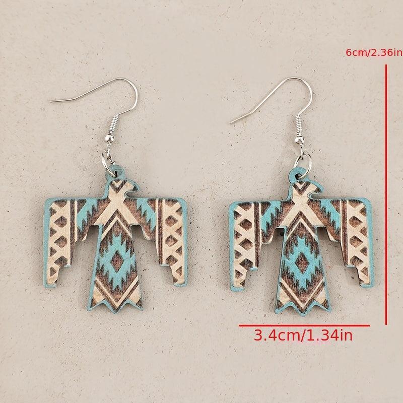 These vintage wooden earrings feature a unique eagle print design, perfect for adding a bohemian ethnic touch to your outfit.