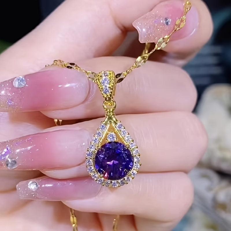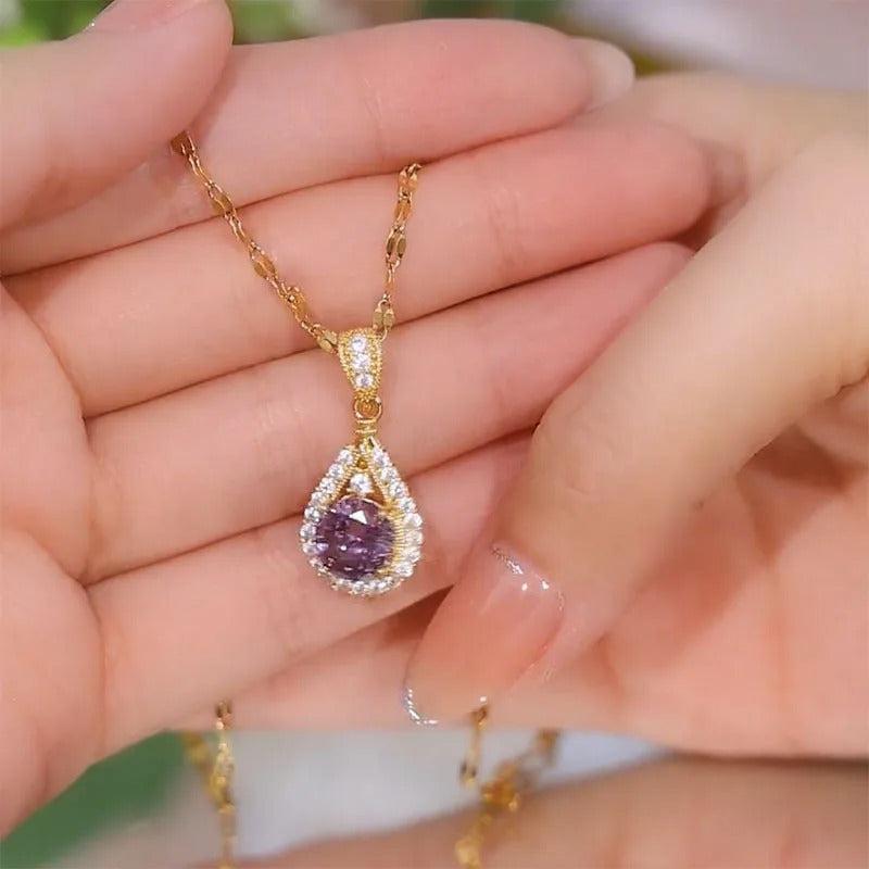 Enhance your style with this dreamy violet pendant necklace made from stainless steel that exudes elegance and charm.