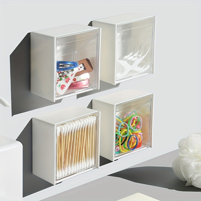 Convenient storage solution for cotton balls, floss, hairpins, and more.