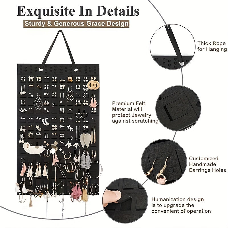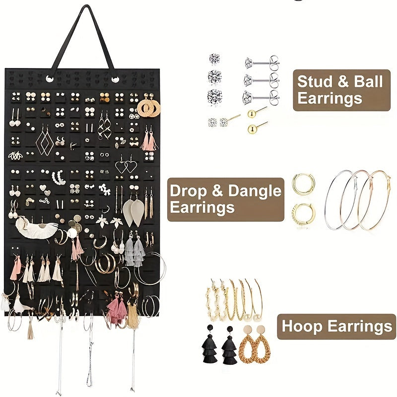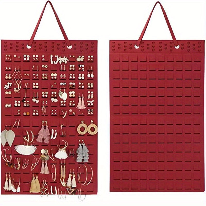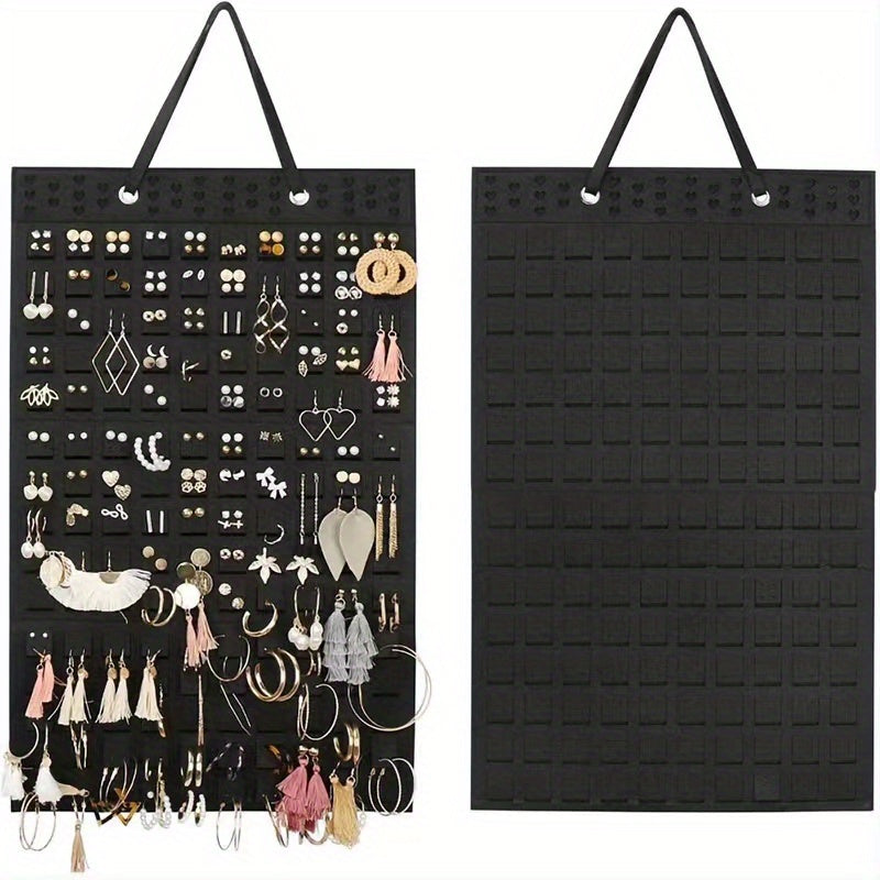 Keep your earrings organized and easily accessible with this minimalist wall-mounted storage bag. Perfect for small spaces and a great way to display your jewelry.