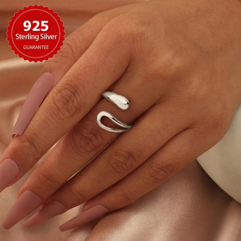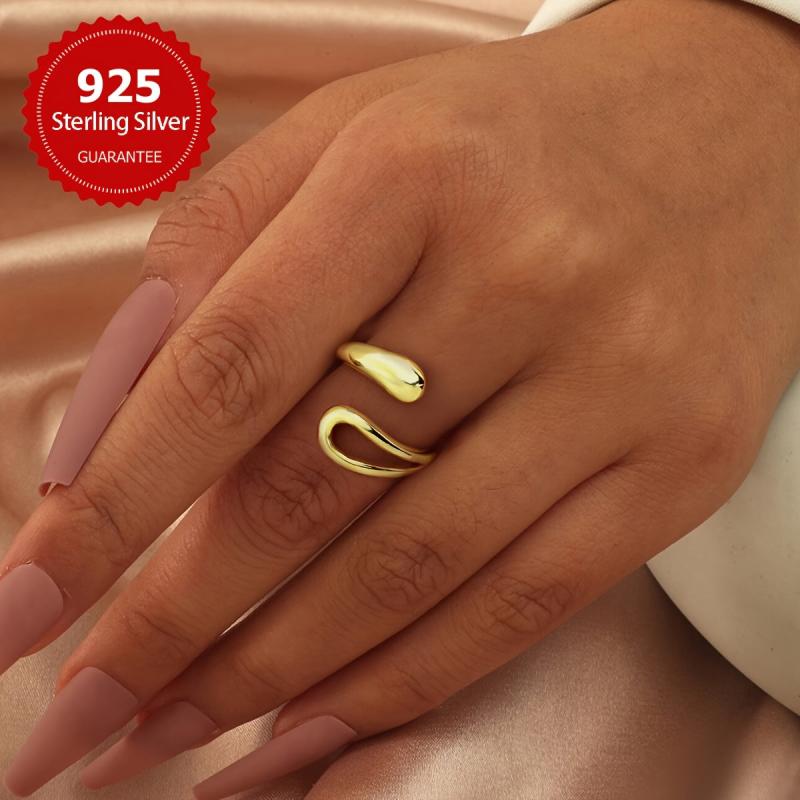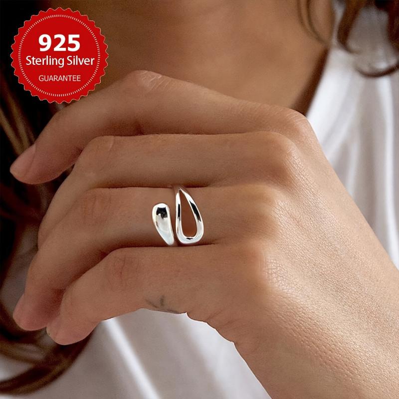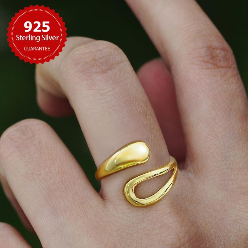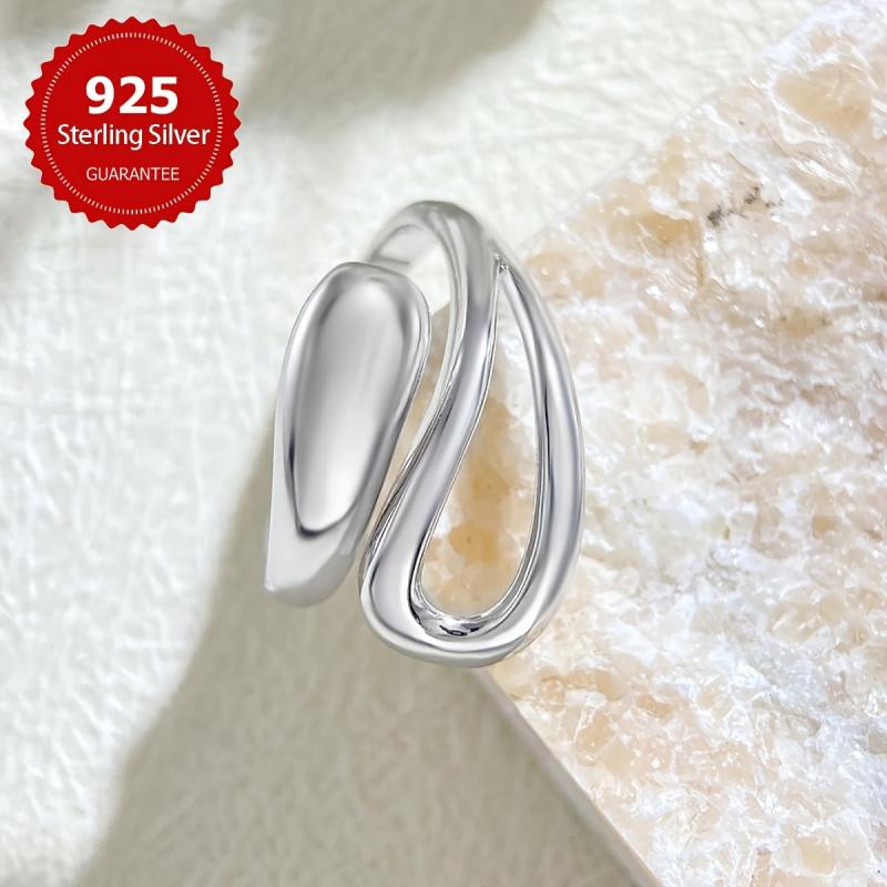 Add a touch of elegance with this glossy water drop hollow ring crafted from S925 sterling silver. It's an atmospheric piece of women's jewelry, perfect as a gift.