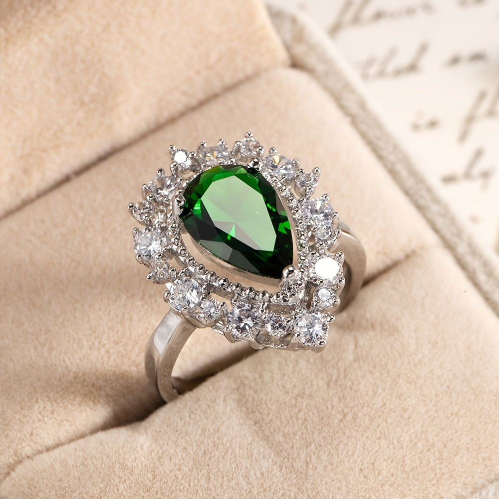 This vintage men's ring features a unique water drop shape design with a stunning green royal zircon. It's perfect for weddings, parties, or as a special gift.
