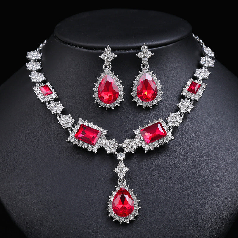 This stunning jewelry set features a water drop-shaped synthetic ruby pendant necklace and matching dangle earrings. Perfect gift for any occasion!